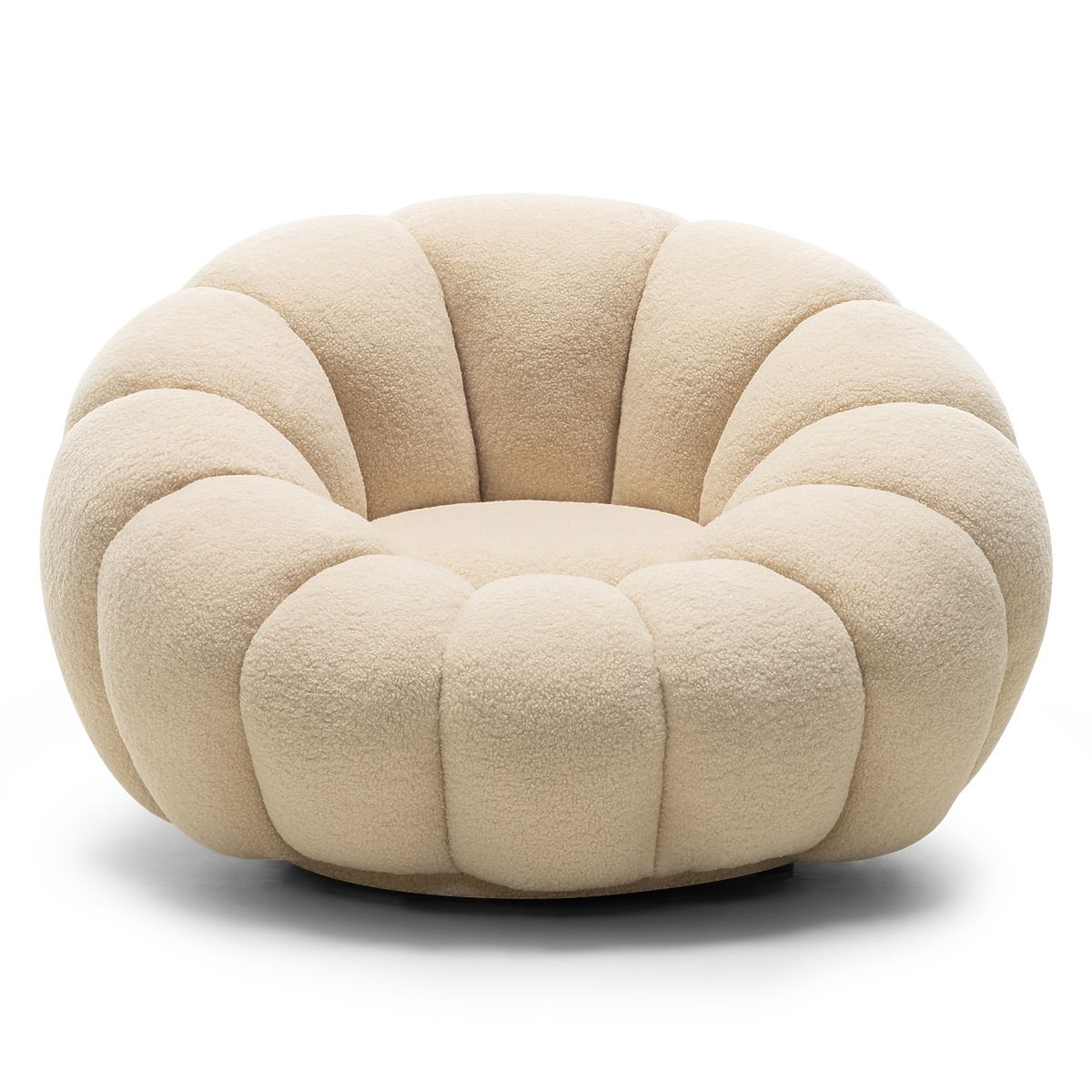 Lukahome.ro » Fotolii și scaune / Fotolii / Fotoliu relaxant Venezia bej cu bază rotativă, boucle, forme rotunjite