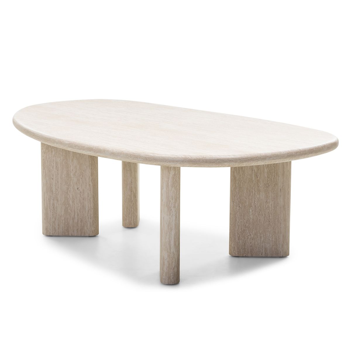 Masă de cafea Cameron cu forme unice și finisaj travertin. .. mai mult
