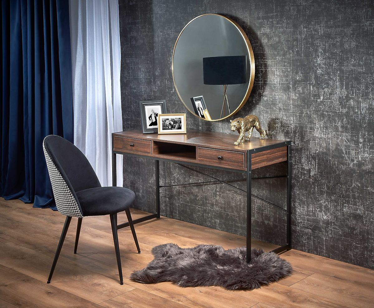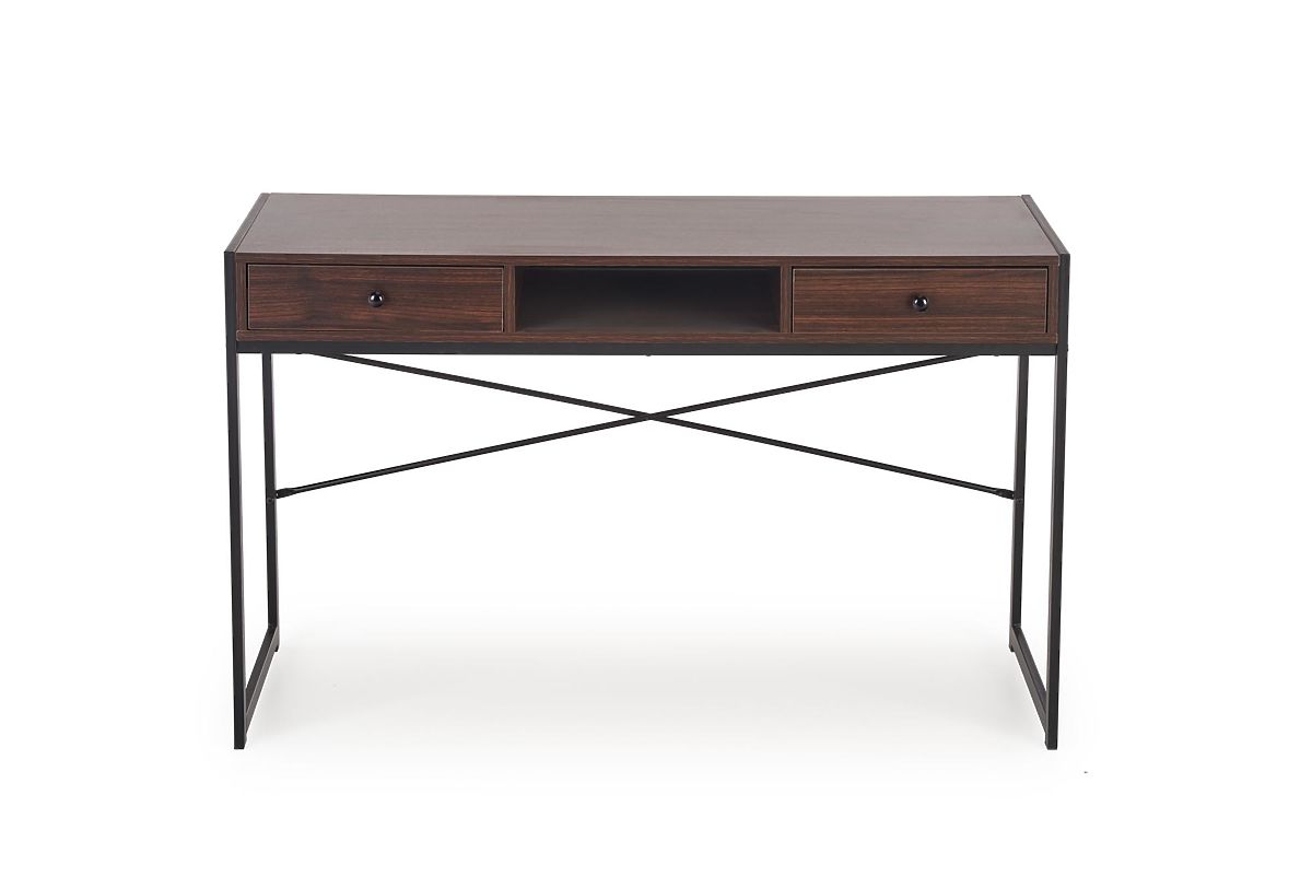 Birou din placă de mobilier laminată, culoare nuc-negru. .. mai mult