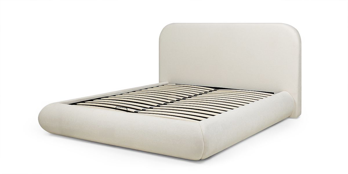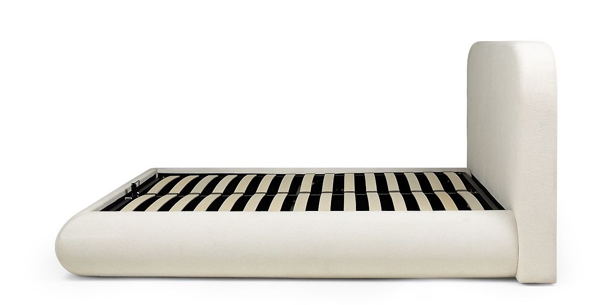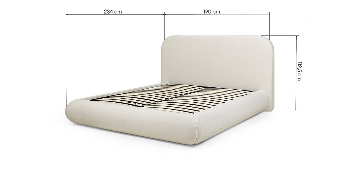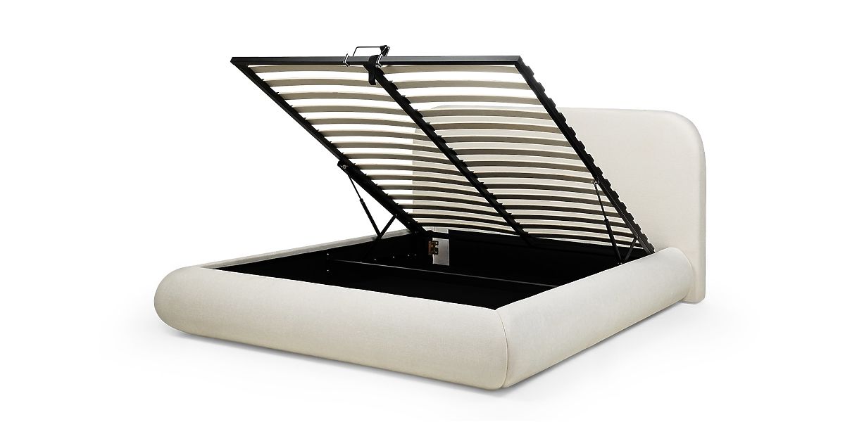 Lukahome.ro » Paturi / Paturi duble / Paturi 160x200 / Pat tapițat Lumi 160x200 cm, cu somieră și spațiu de depozitare, rotunjit, bej deschis