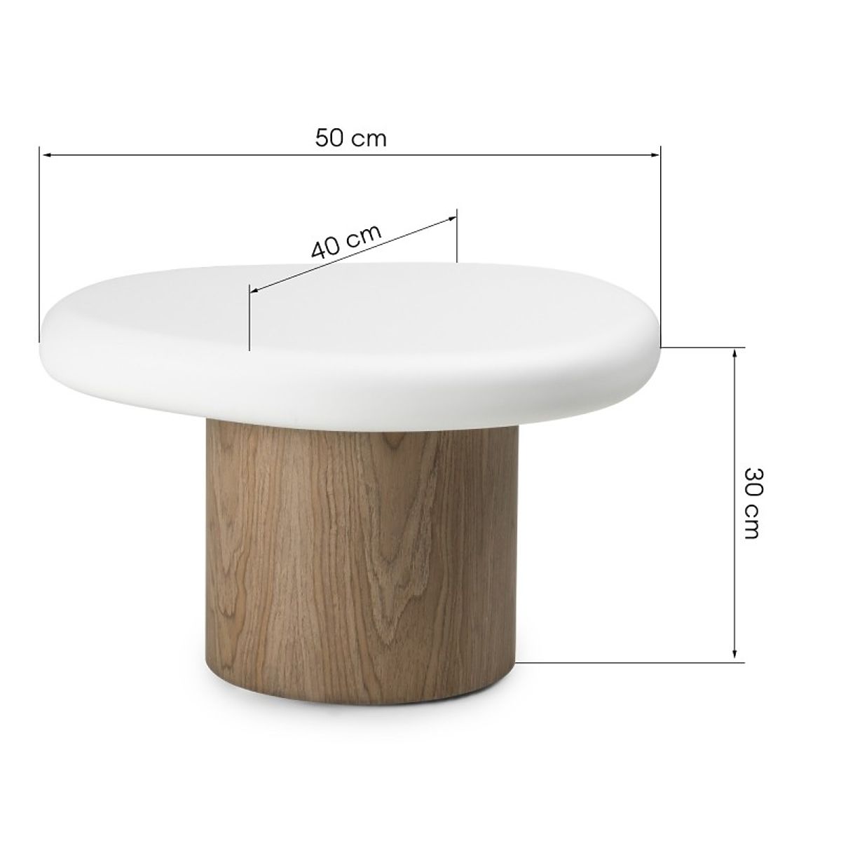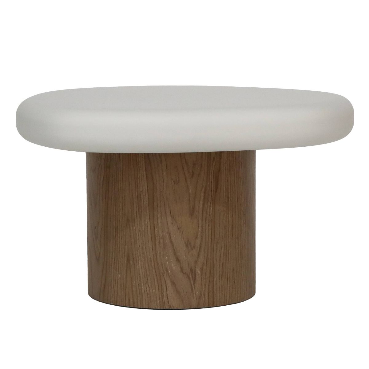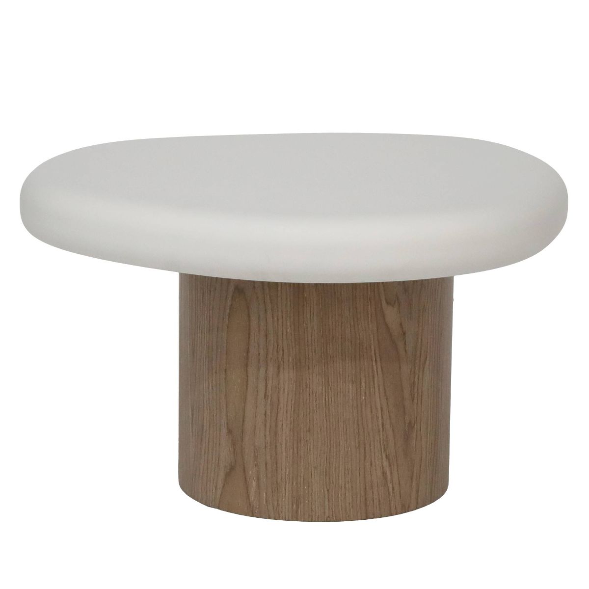 Măsuță laterală din MDF cu formă organică, albă, cu bază de nuc. .. mai mult
