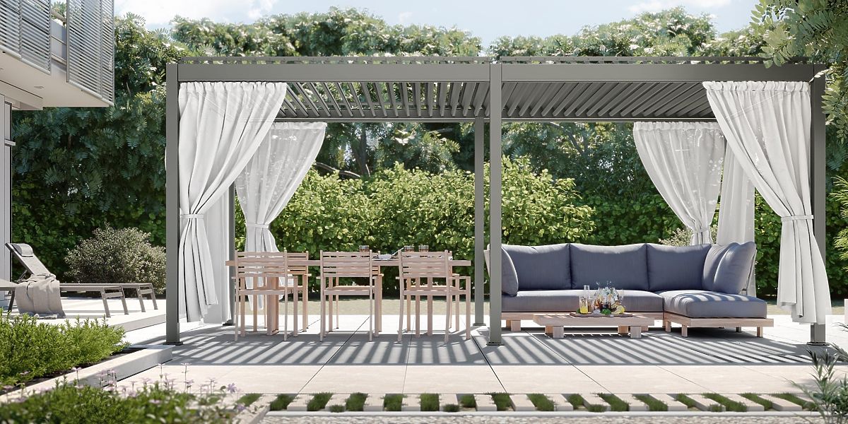 Perdele albe pentru pergola, protecție UV și intimitate. .. mai mult