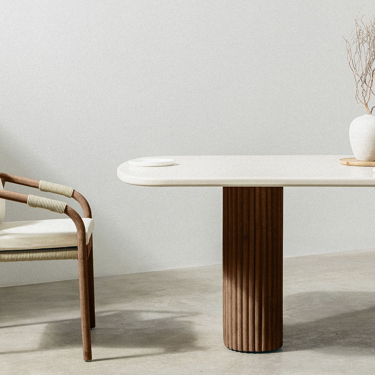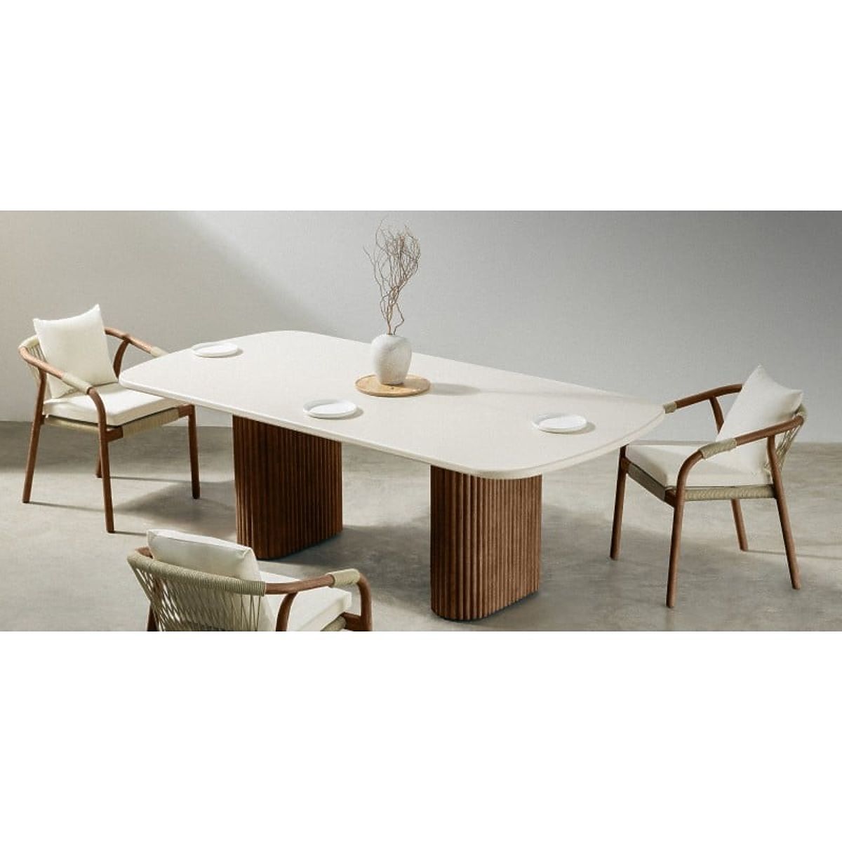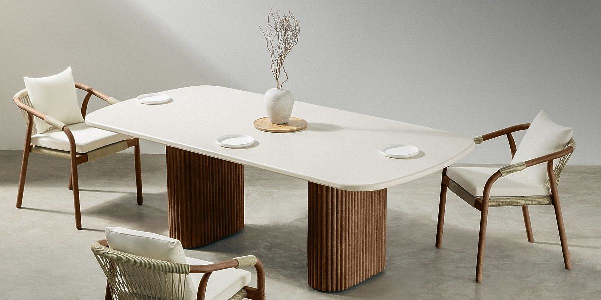 Lukahome.ro » Mobilier de grădină / Mese de grădină / Masă de grădină Rovigo 220 cm cu blat din piatră, lemn de acacia închis/la culoare bej deschis, form