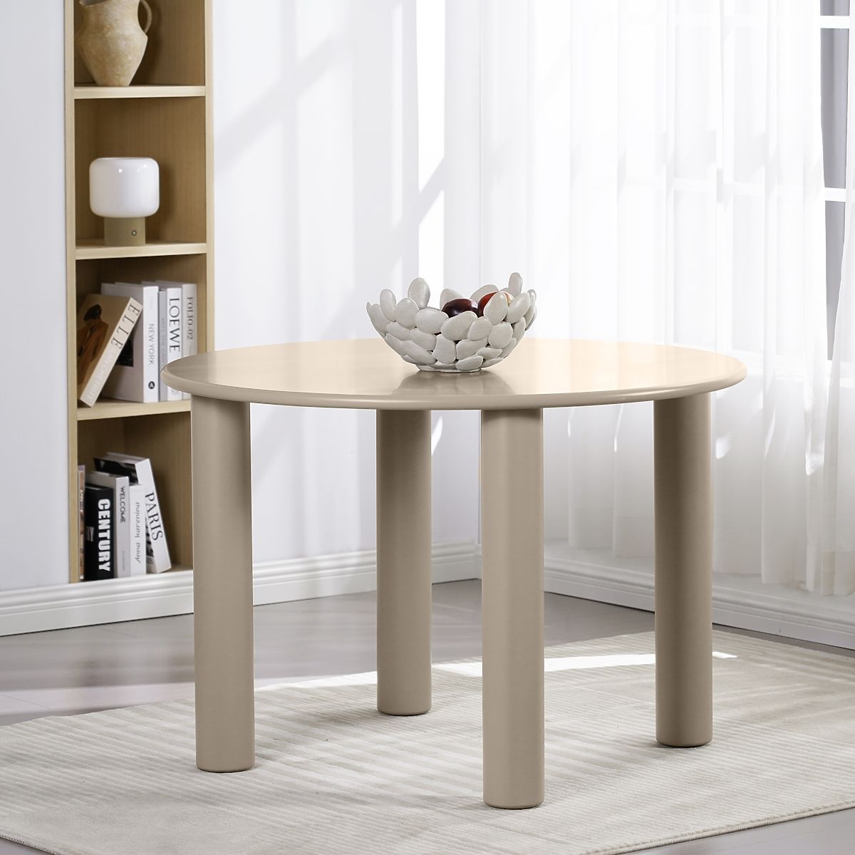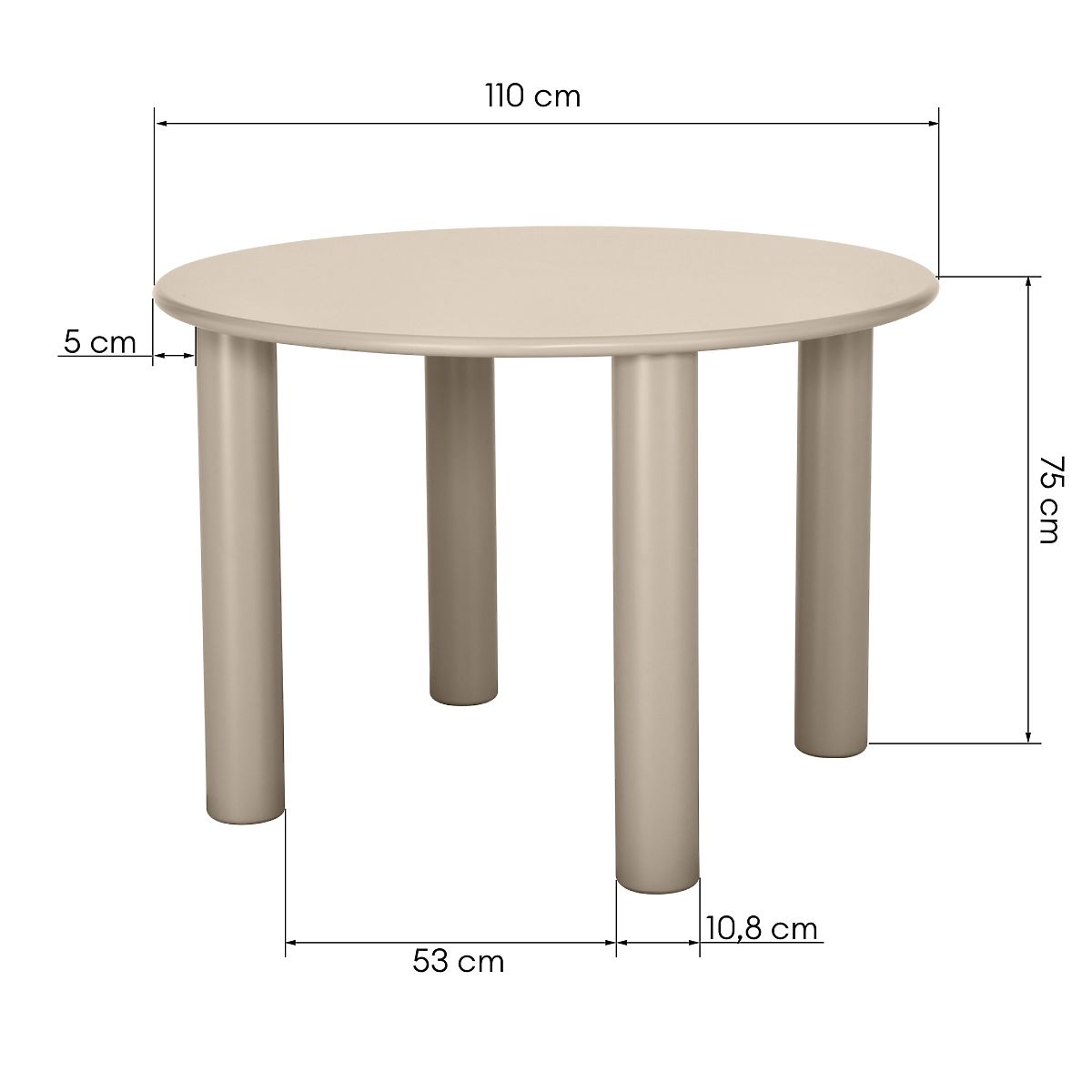 Masă rotundă Joki de 110 cm, bej închis, cu picioare cilindrice solide. .. mai mult