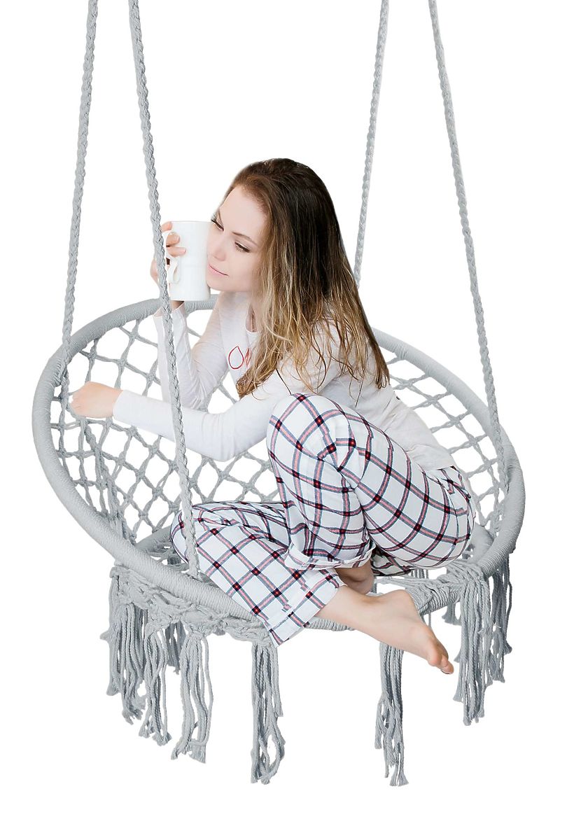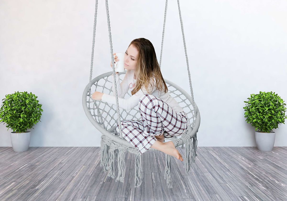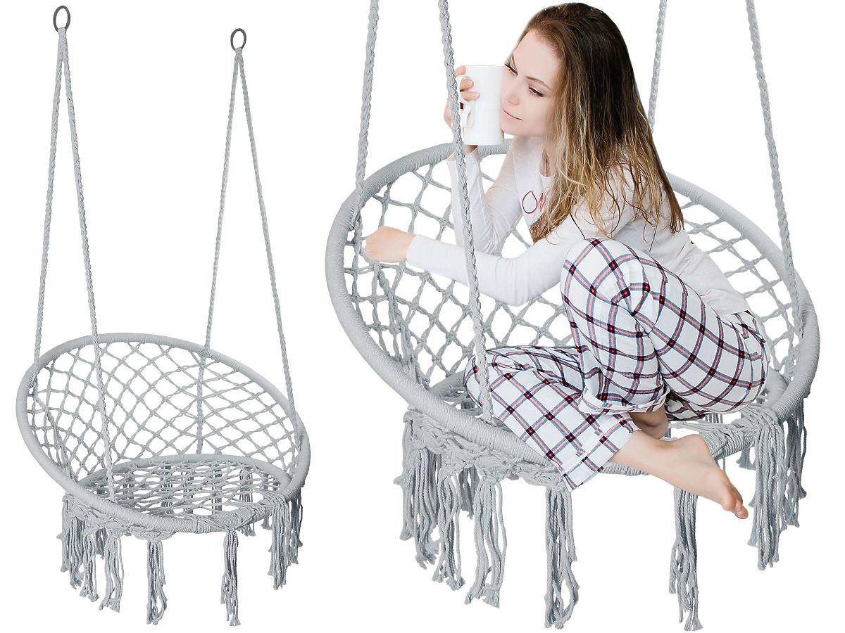 Principalul motiv este durabilitatea sa - cadru din oțel și împletitură frumoasă din frânghie în stil boho.