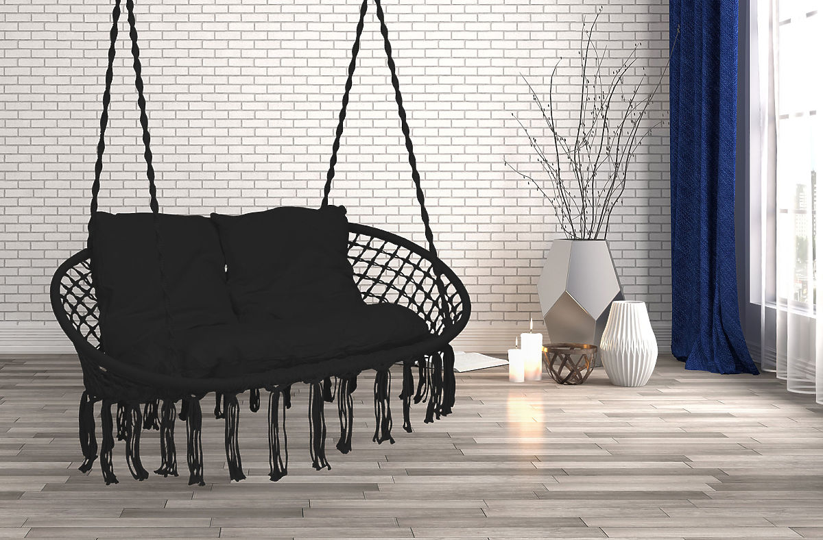 Scaun suspendat Cuib de barză LAGOS negru cu perne