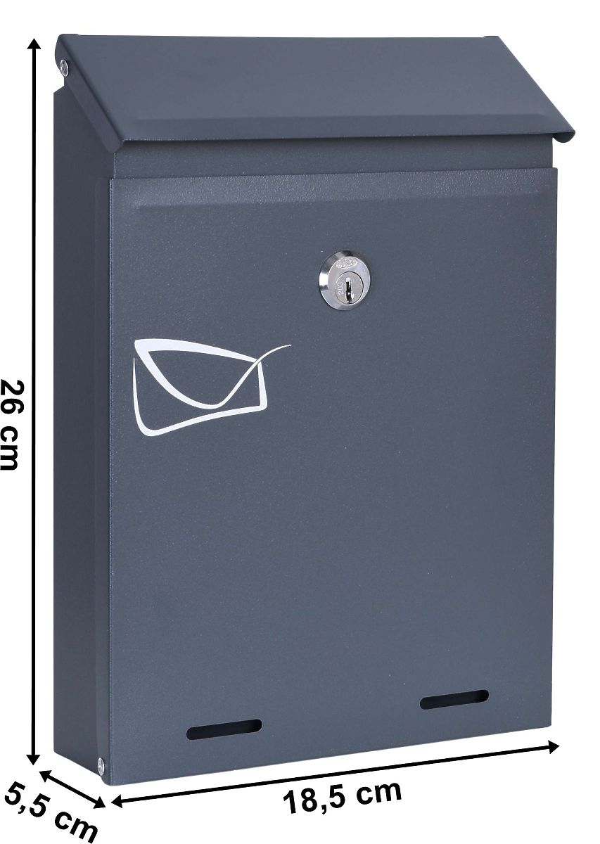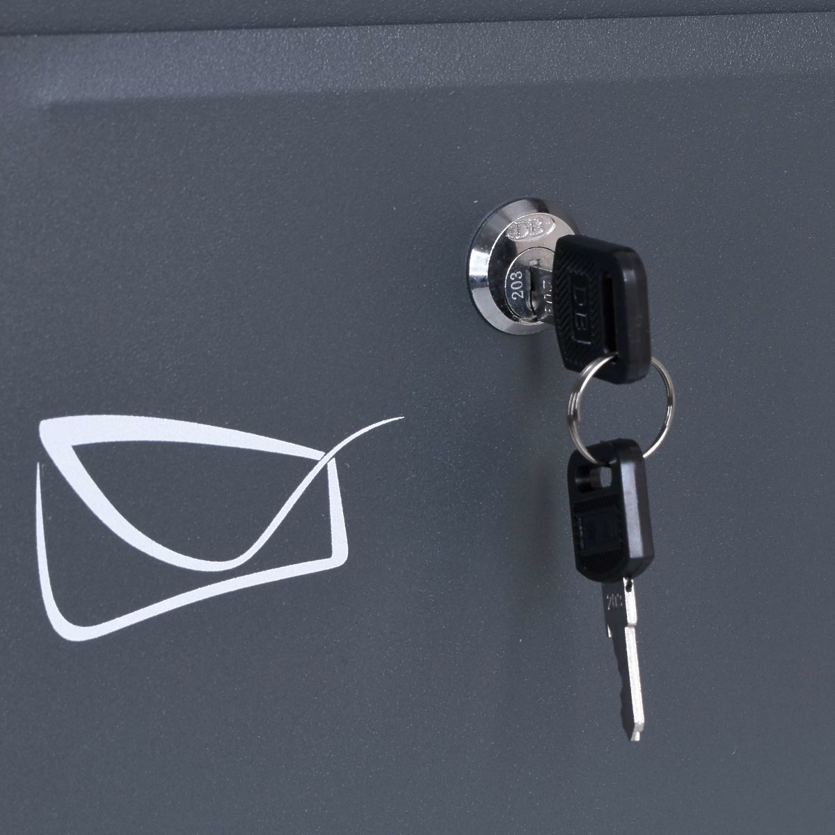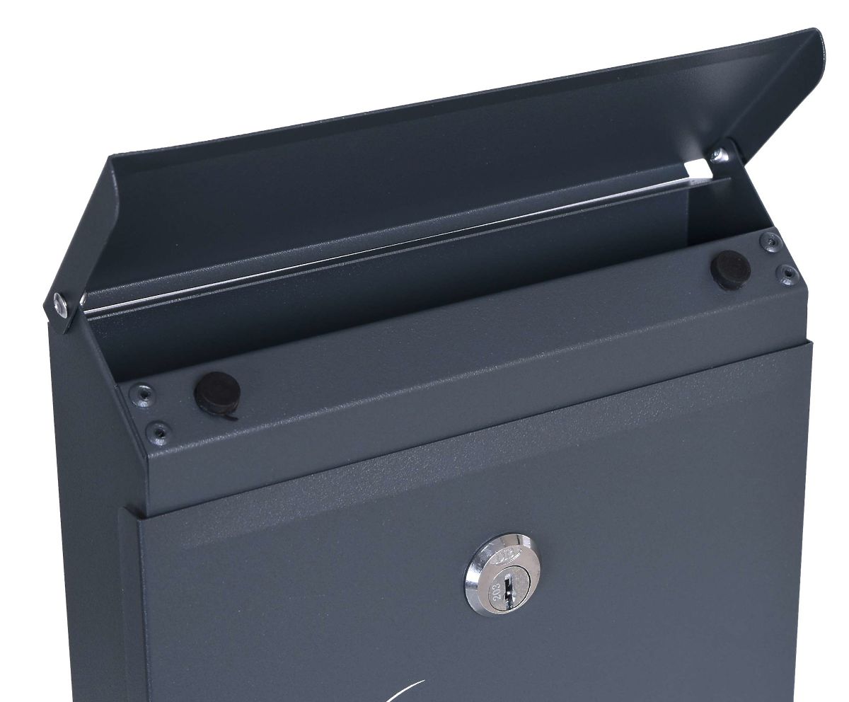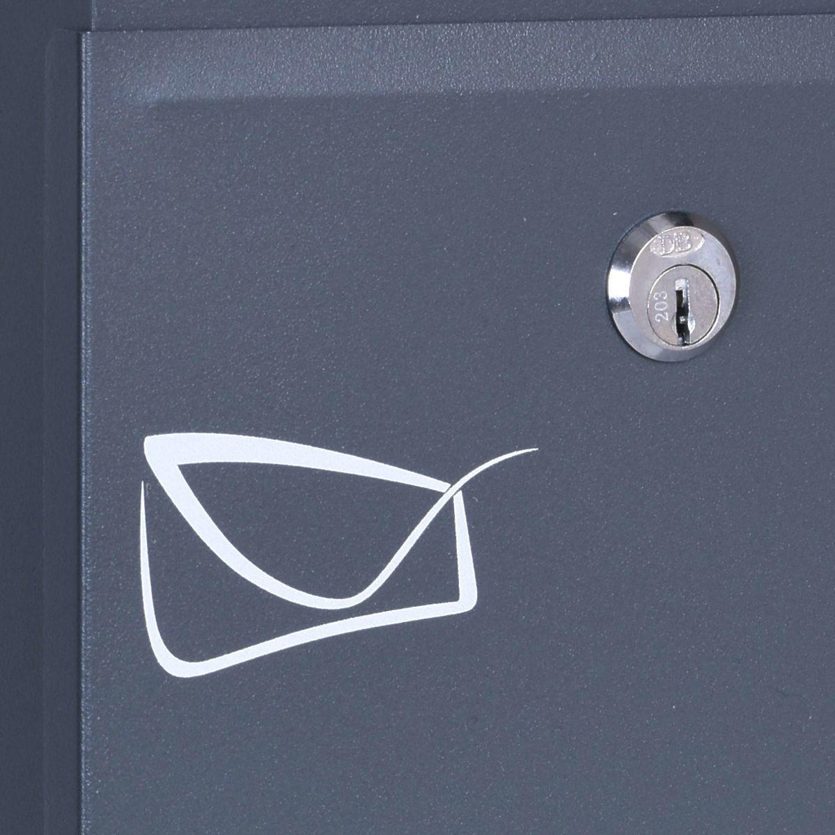 Cutia poștală modernă și funcțională Odvin antracit, proiectată cu durabilitate și eleganță în minte. Dimensiunile compacte de 26 x 18,5 x 5,5 cm și deschiderea pentru scrisori de 18 x 2 cm sunt ideale pentru spații mai mici. Fabricată din oțel galvanizat cu acoperire cu pulbere, rezistentă la intemperii, potrivită pentru montare atât în exterior, cât și în interior. Siguranță datorită încuietorii cu cheie – setul include 2 chei și elemente de montaj. Soliditate și stil într-un singur produs!