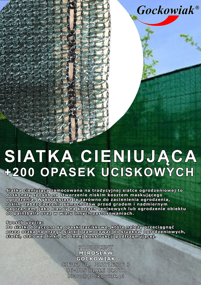 Plasa de umbrire este o modalitate excelentă de a crea un gard de camuflaj cu costuri reduse. Scopul său principal este de a limita vizibilitatea și accesul luminii, menținând în același timp o ventilație corespunzătoare. Plasa este dens împletită, realizată din materiale de cea mai bună calitate HDPE și PP. Conține un filtru UV care îi întărește și îi prelungește durata de viață. Reduce până la 90% din lumina solară. Versiunea cu întărire sub formă de cusături din polipropilenă lângă orificiile de montare. Pachetul include 200 de bucăți de benzi de fixare. Plasa este pliată în dimensiuni compacte pentru transport.
