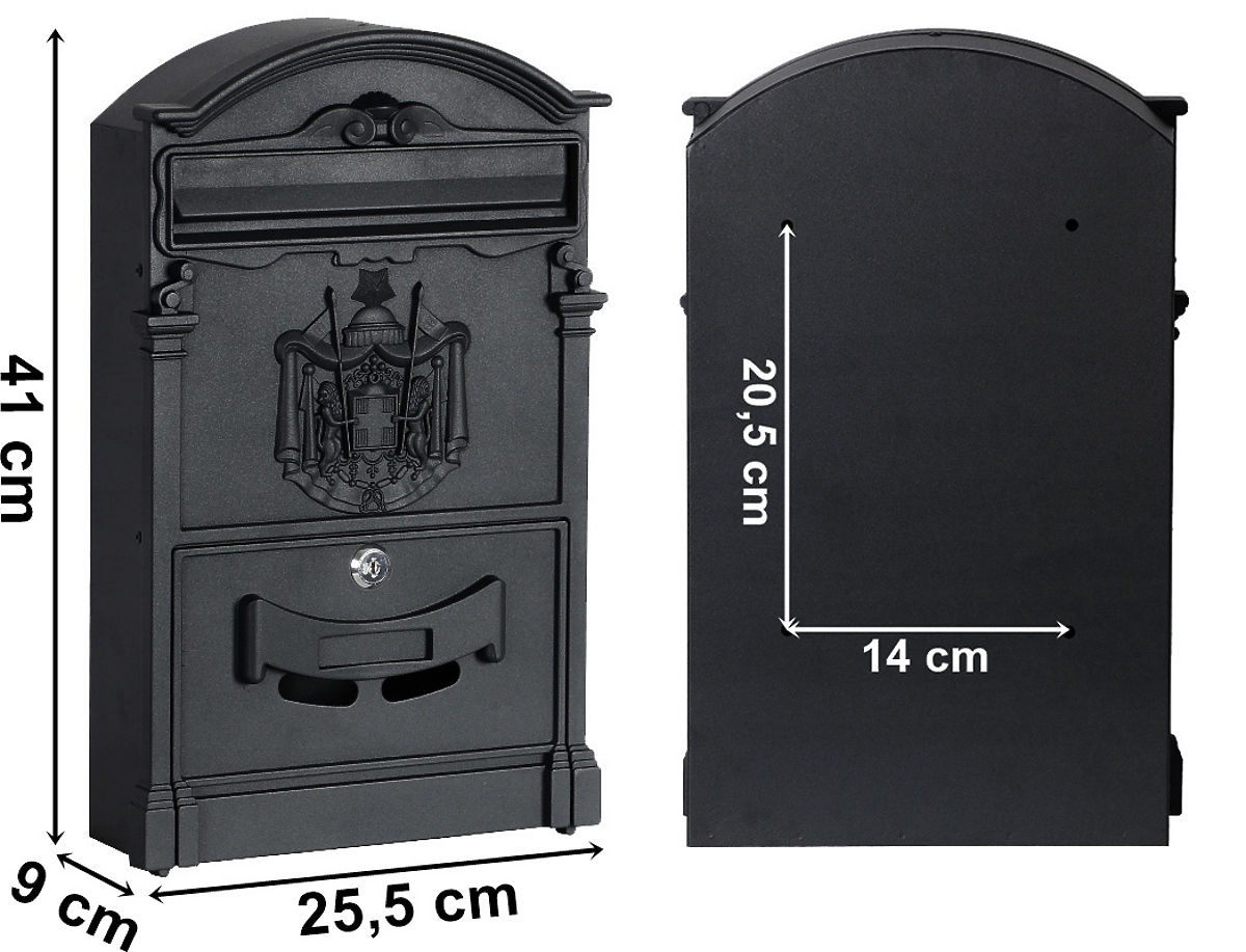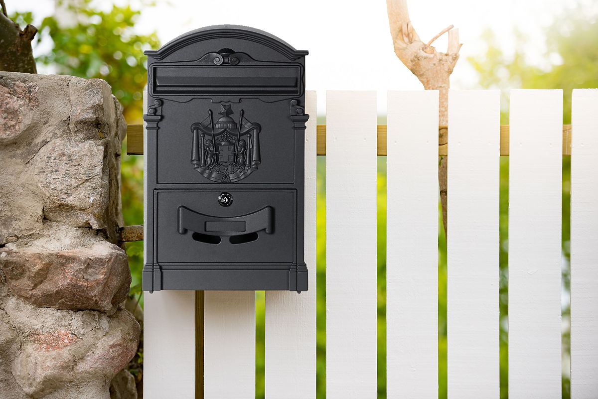 Cutie poștală practică din oțel galvanizat vopsit în câmp electrostatic. Stil atemporal, care nu poate fi trecut cu vederea. Cutia se remarcă prin deschiderea largă și fereastra clară pentru numele străzii. Fabricată din materiale de înaltă calitate, rezistente la intemperii, asigurând protecția corespondenței. Pe partea frontală a cutiei sunt două mici orificii, care permit verificarea ușoară a corespondenței.
