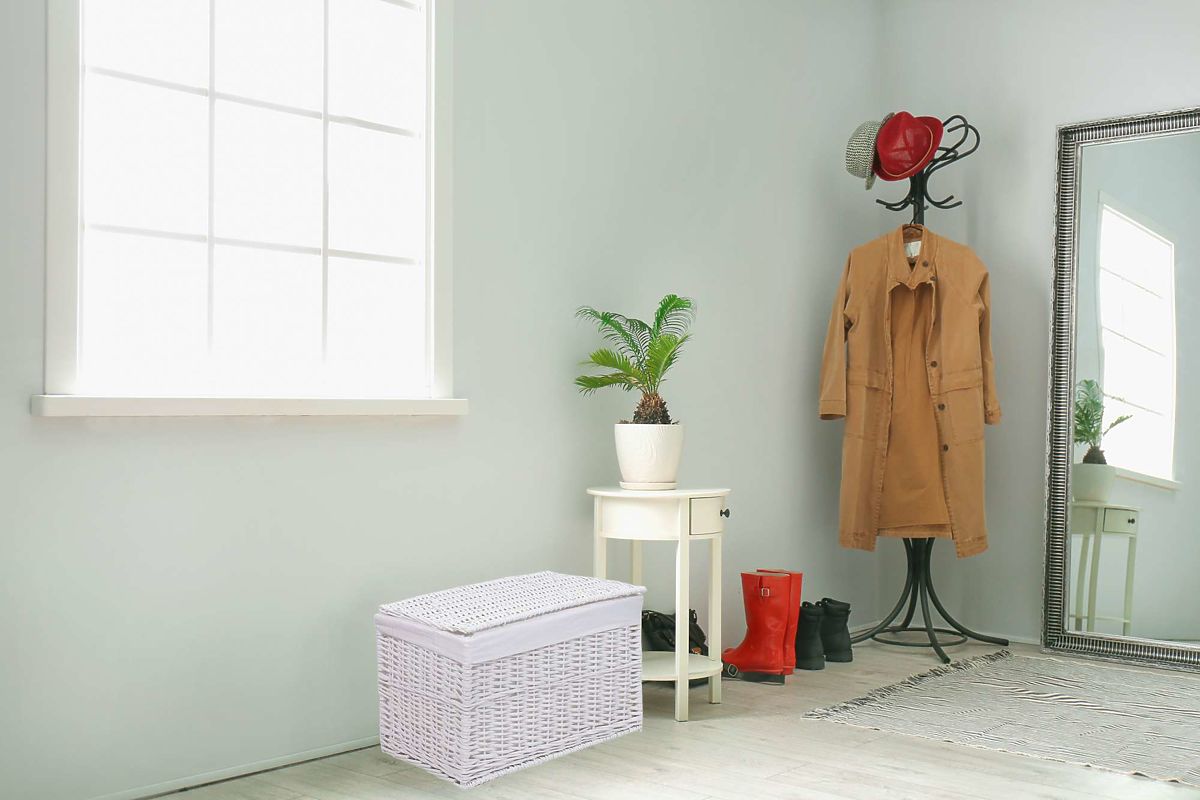 Cufăr din răchită albă cu capacitate de 160 L pentru baie și dormitor. .. mai mult
