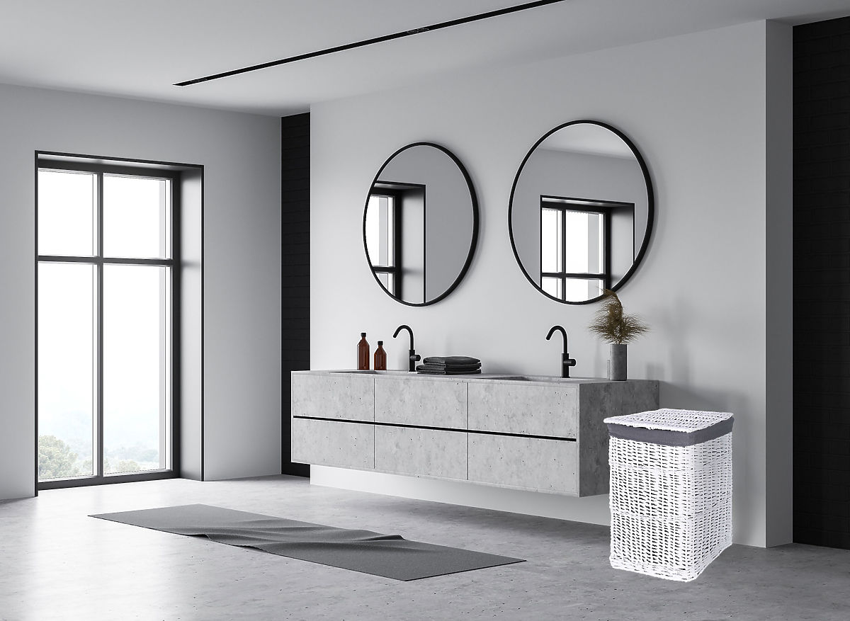 Coș din răchită 40x30x60 cm - 72L - alb-gri