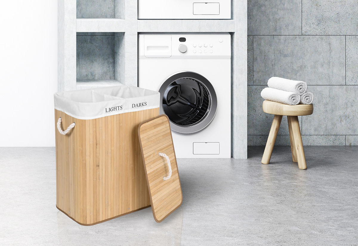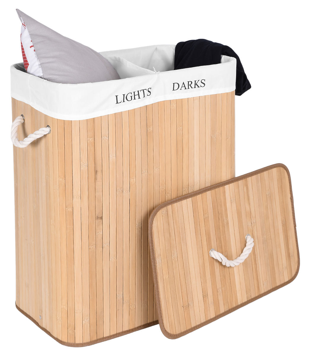 Lukahome.ro » Baie și toaletă / Accesorii pentru baie / Coș de rufe din bambus cu 2 compartimente natural