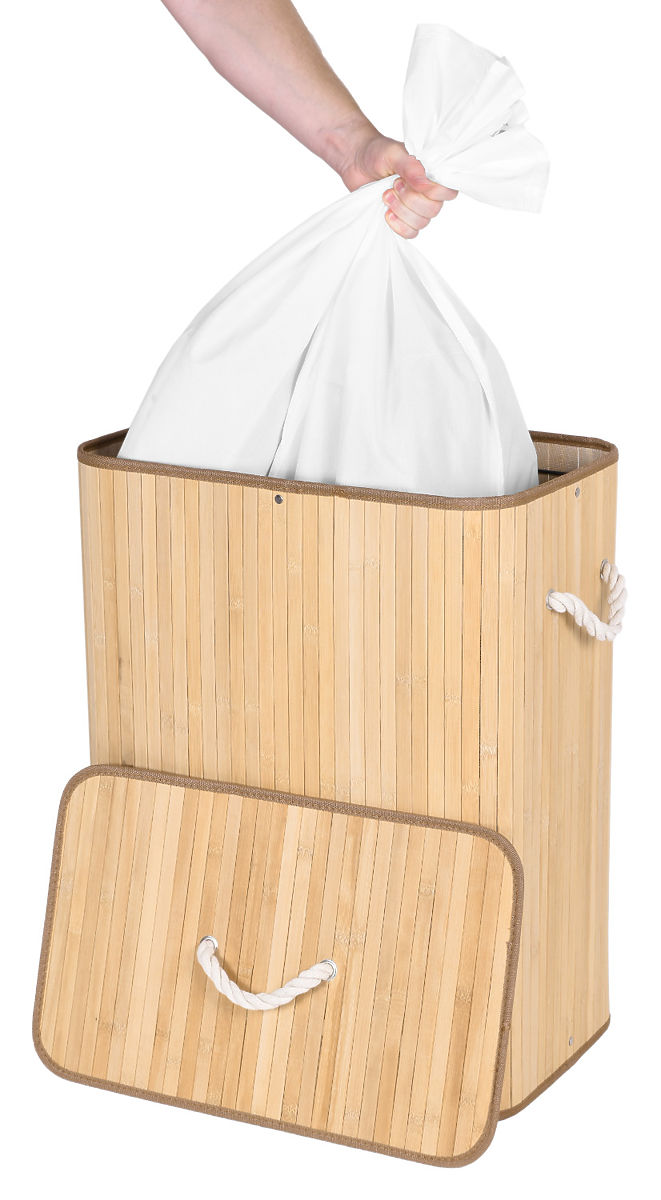 Coș de rufe din bambus cu separator pentru rufe deschise și închise. .. mai mult