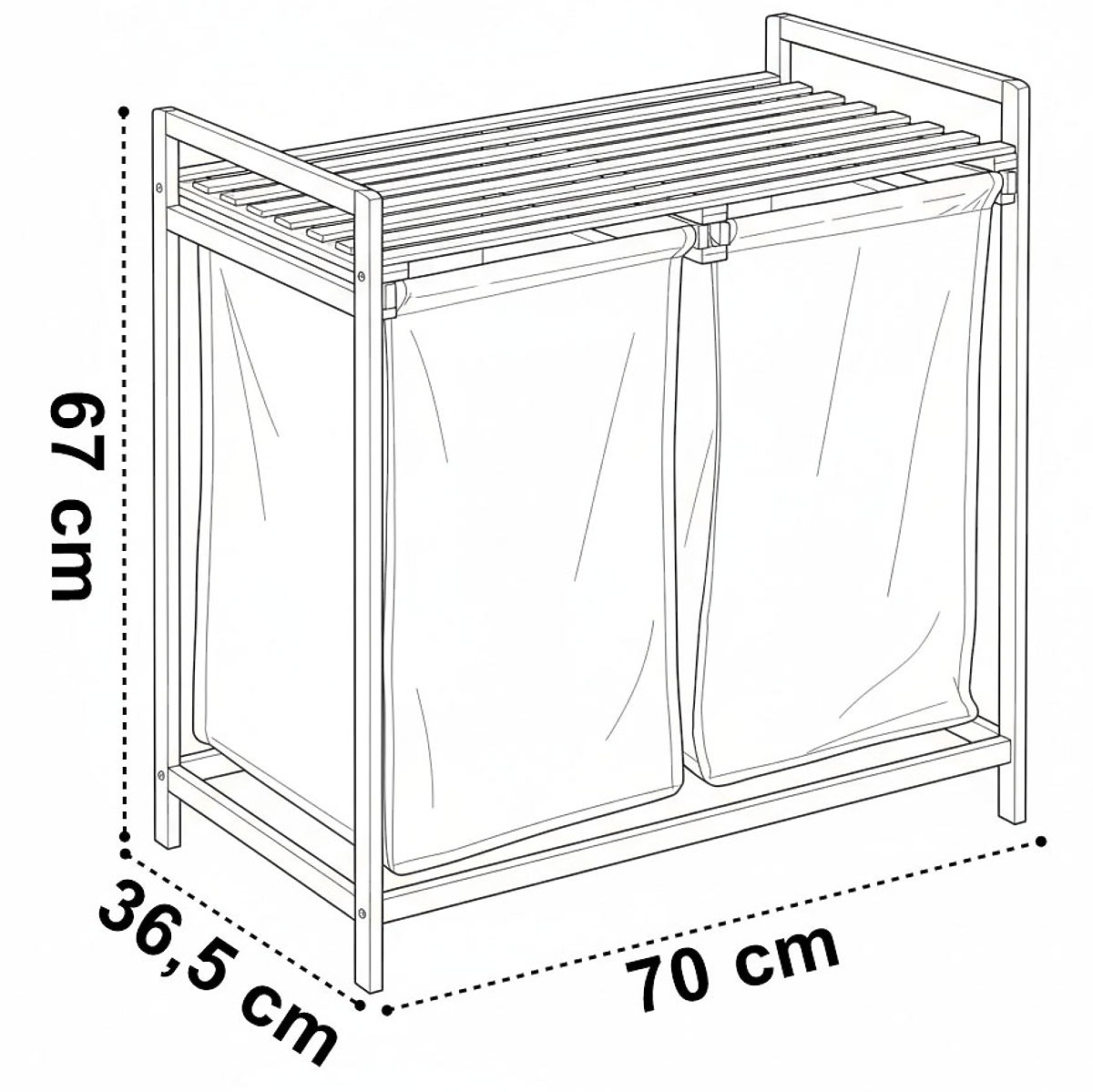 Coș de rufe sau jucării din bambus HANOI cu 2 compartimente Destinație: baie, cameră pentru copii | Culori: alb și bambus natural Coșul de rufe Hanoi din bambus este un coș estetic și spațios, care poate conține o mulțime de haine. Fabricat din bambus șlefuit, nu are margini ascuțite, este plăcut neted și atent lucrat. Polița superioară poate servi ca loc pentru accesorii de baie, detergenți, dar și ca loc pentru decorațiuni sau lumânări parfumate. Coșul are șine care facilitează umplerea și golirea sacului textil. Datorită acestora, întregul sac poate fi scos și transportat. Hanoi se montează fără găurire și unelte specializate. Asamblarea durează literalmente un moment și tot ce este necesar pentru asamblare se găsește în pachet. Caracteristicile produsului coș: lemn de bambus materialul inserției: poliester capacitate: 80L estetic lucrat poliță mare pentru accesorii umplere și golire ușoară datorită șinelor posibilitatea de spălare a inserției Dimensiunile produsului Înălțime: 67 cm Lățime: 70 cm Adâncime: 36,5 cm Informații suplimentare Culorile prezentate sunt orientative - pot diferi de cele reale din cauza setărilor diferite ale monitoarelor și procesului de editare a fotografiilor. Dimensiunile reale pot diferi de cele menționate mai sus. Toleranța erorilor poate fi +/- 5%. Marca: Gockowiak Codul produsului: 5902340317358 Codul EAN: 5902340317358 Culoare: alb Înălțime: 67 cm Lățime: 70 cm Materialul coșului: bambus Materialul sacului: poliester