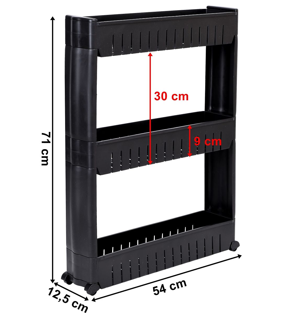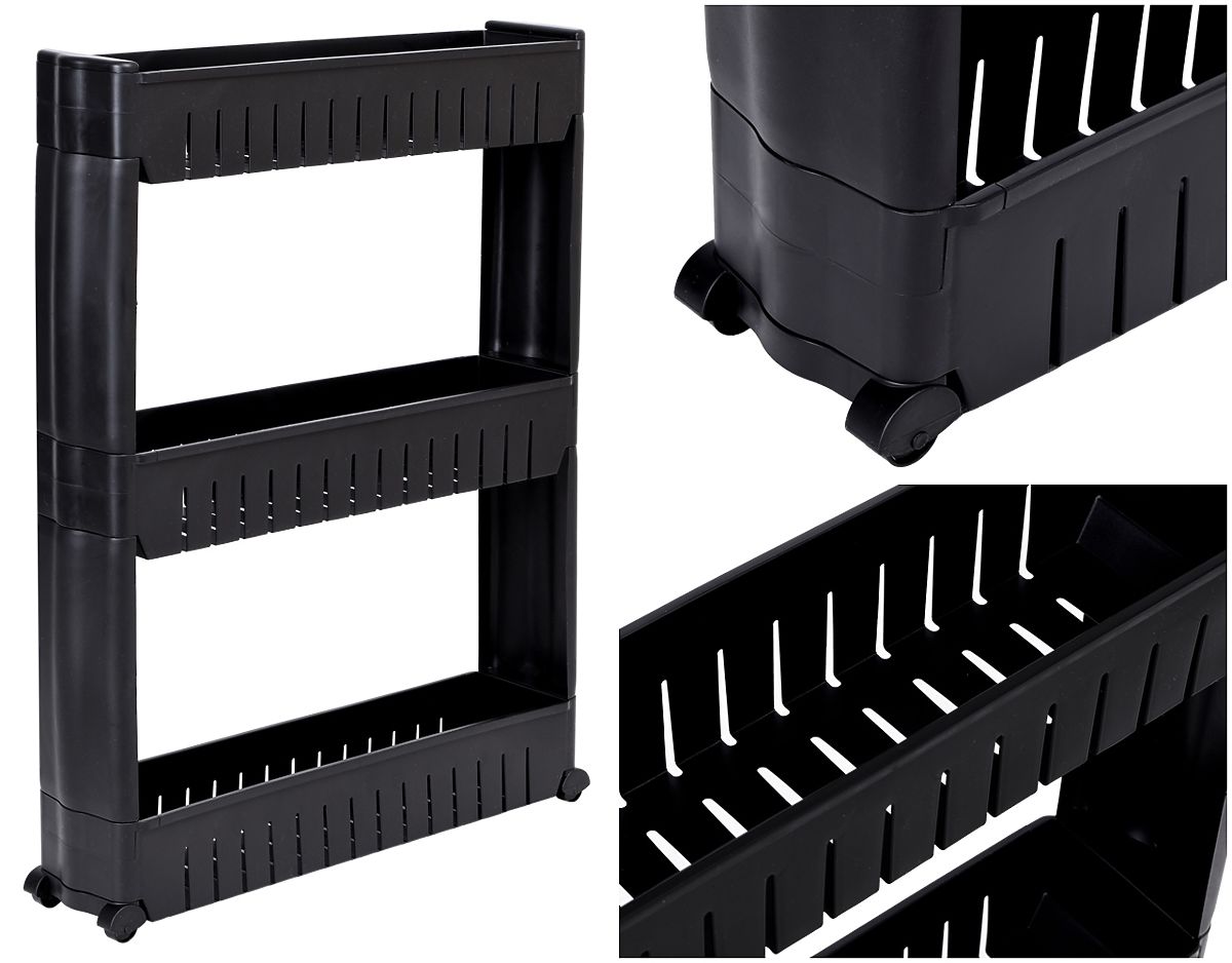 Dulap mobil ideal pentru spații înguste, cum ar fi bucătăria sau baia. Construcția sa modulară din plastic rezistent permite adaptarea ușoară la nevoi - rafturile pot fi adăugate sau eliminate. Datorită dimensiunilor compacte, se potrivește perfect între dulap și frigider, mașina de spălat sau în alte locuri greu accesibile. Raftul de bucătărie este ideal pentru depozitarea condimentelor, accesoriilor de bucătărie, cosmeticelor, produselor de curățenie și multor alte lucruri necesare. Mobilitatea este asigurată de cele patru roți, care permit mutarea ușoară a dulapului de baie pe roți acolo unde este necesar.