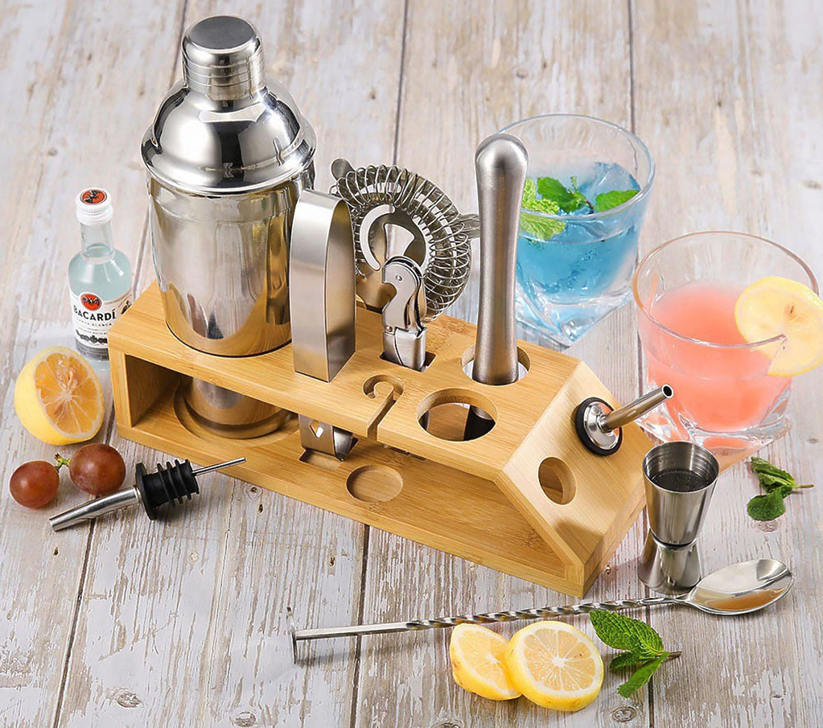 Dacă doriți să oferiți un cadou deosebit pentru dumneavoastră sau pentru altcineva, sunteți în locul potrivit. Setul de barman Bradford este compus dintr-un suport din bambus atent lucrat și nouă accesorii din oțel inoxidabil.