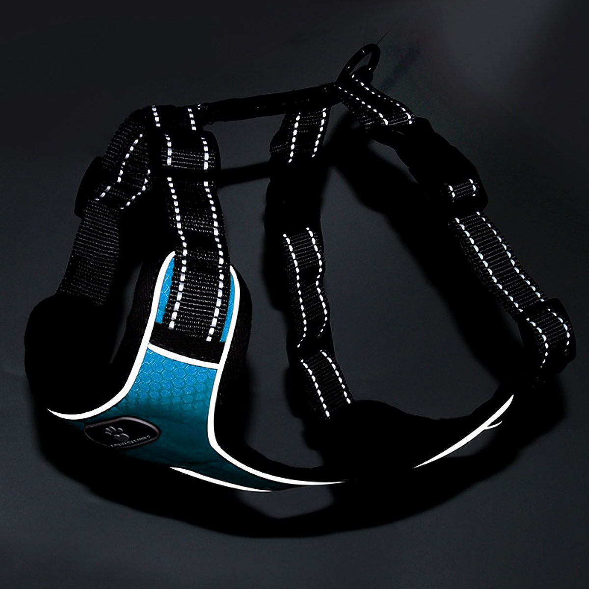 Ham pentru câini fără presiune, ideal pentru plimbări pe orice vreme. Este fabricat din materiale de cea mai înaltă calitate, fiind rezistent, impermeabil, dar și respirabil. Nu exercită presiune asupra animalului, asigurându-i siguranță și confort. Este foarte sigur - lesa se atașează la un mâner metalic solid. Cataramele au încuietori suplimentare, astfel încât câinele nu se va elibera singur. Circumferința hamului poate fi ajustată în intervalul specificat în specificații. Hamul are elemente reflectorizante suplimentare, astfel încât câinele va fi bine vizibil chiar și în întuneric.