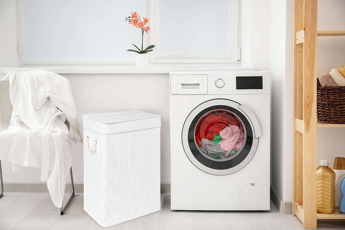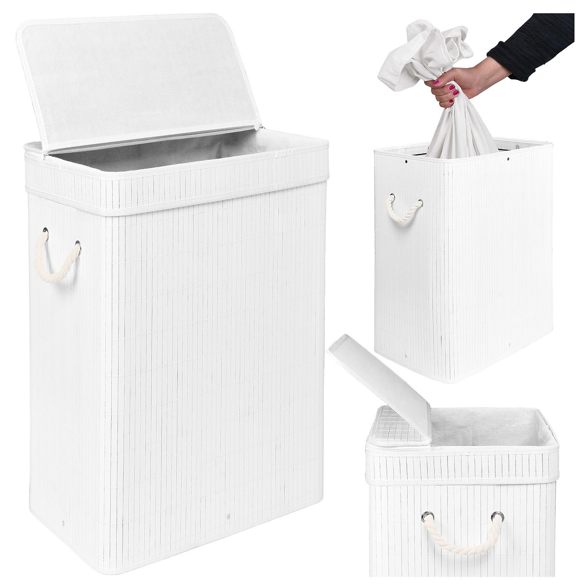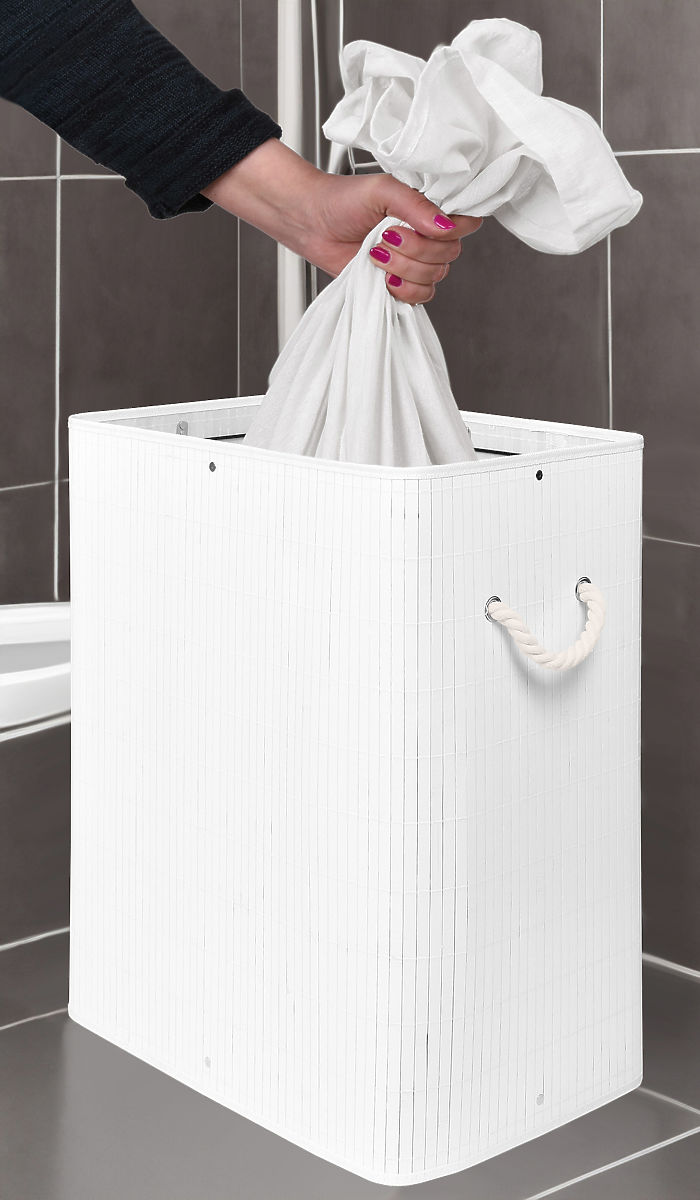Coș de rufe din bambus cu capac SOREN 80L alb Capacitate: 80 litri | Culori: Alb