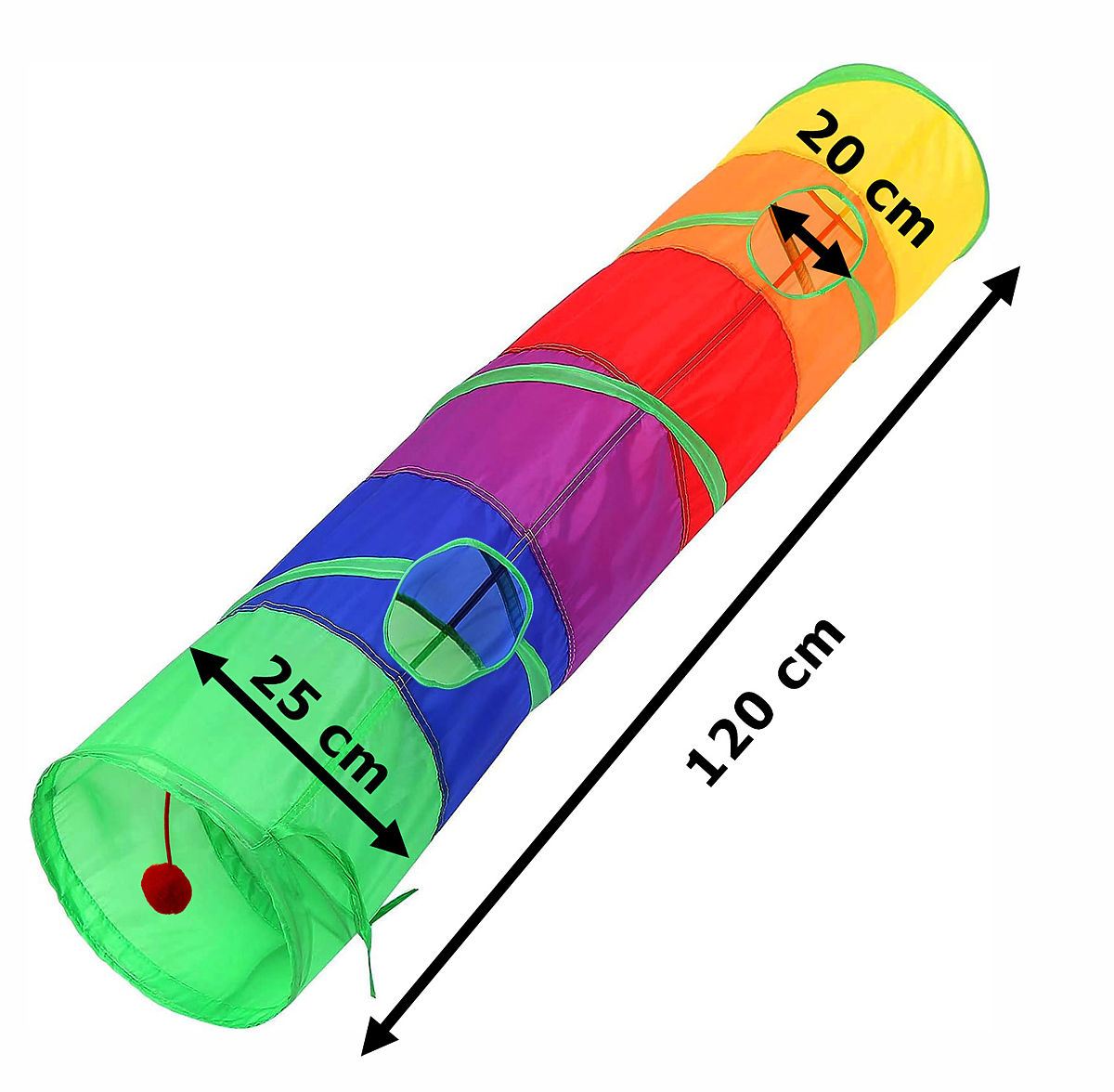 Tunelul cu arc pentru pisici este o jucărie indispensabilă care va oferi animalului tău de companie multe ore de bucurie. Va stimula curiozitatea și îl va încuraja să fie activ. Sunetele foșnitoare emise de tunel atrag atenția pisicuțelor și le invită la joacă. Tunelul cu două ferestre oferă o distracție grozavă și poate servi, de asemenea, ca un adăpost sigur, unde pisica ta se poate relaxa și simți în siguranță. Fie că ești acasă sau în grădină, acest tunel se va dovedi perfect. Pe o parte are o jucărie suplimentară de agățat, terminată cu un pompon pufos, jucăria preferată a micilor prădători. Un alt avantaj este dimensiunea sa - 120 cm nu ocupă mult spațiu în casă și oferă adăpost și distracție chiar și pentru mai multe pisici simultan. Tunelul poate fi ușor pliat plat și transportat convenabil oricând. Ocupă foarte puțin spațiu datorită diametrului de 25 cm, astfel încât îl poți lua cu ușurință cu tine oriunde mergi. Este un cadou ideal pentru animalul tău de companie pisică!