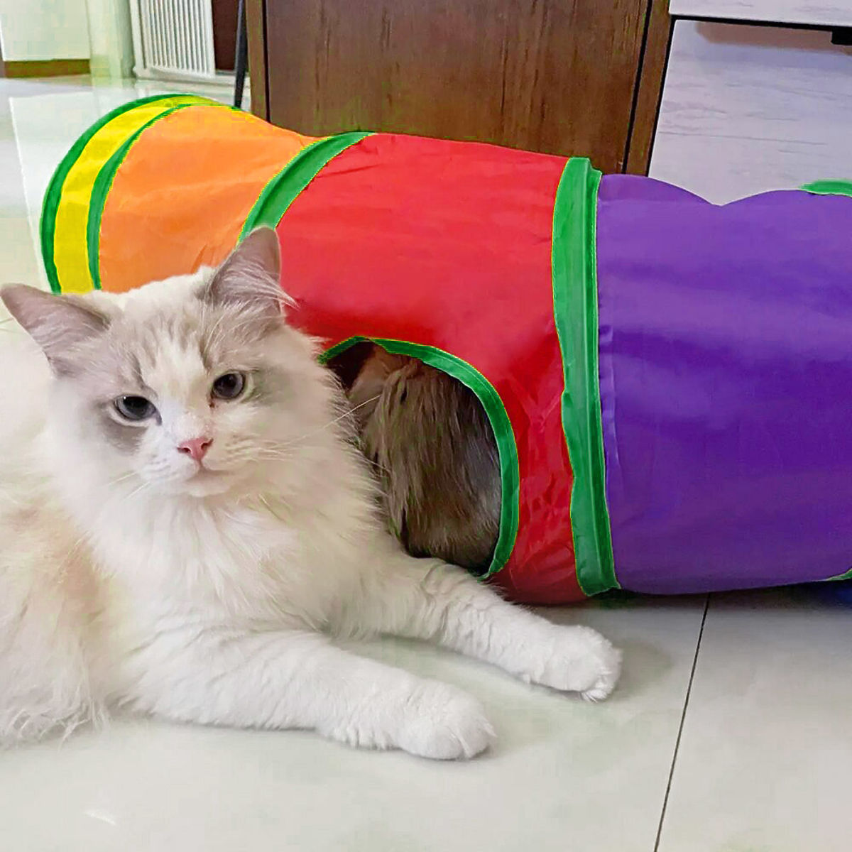 - Tunelul stimulează curiozitatea naturală a pisicii