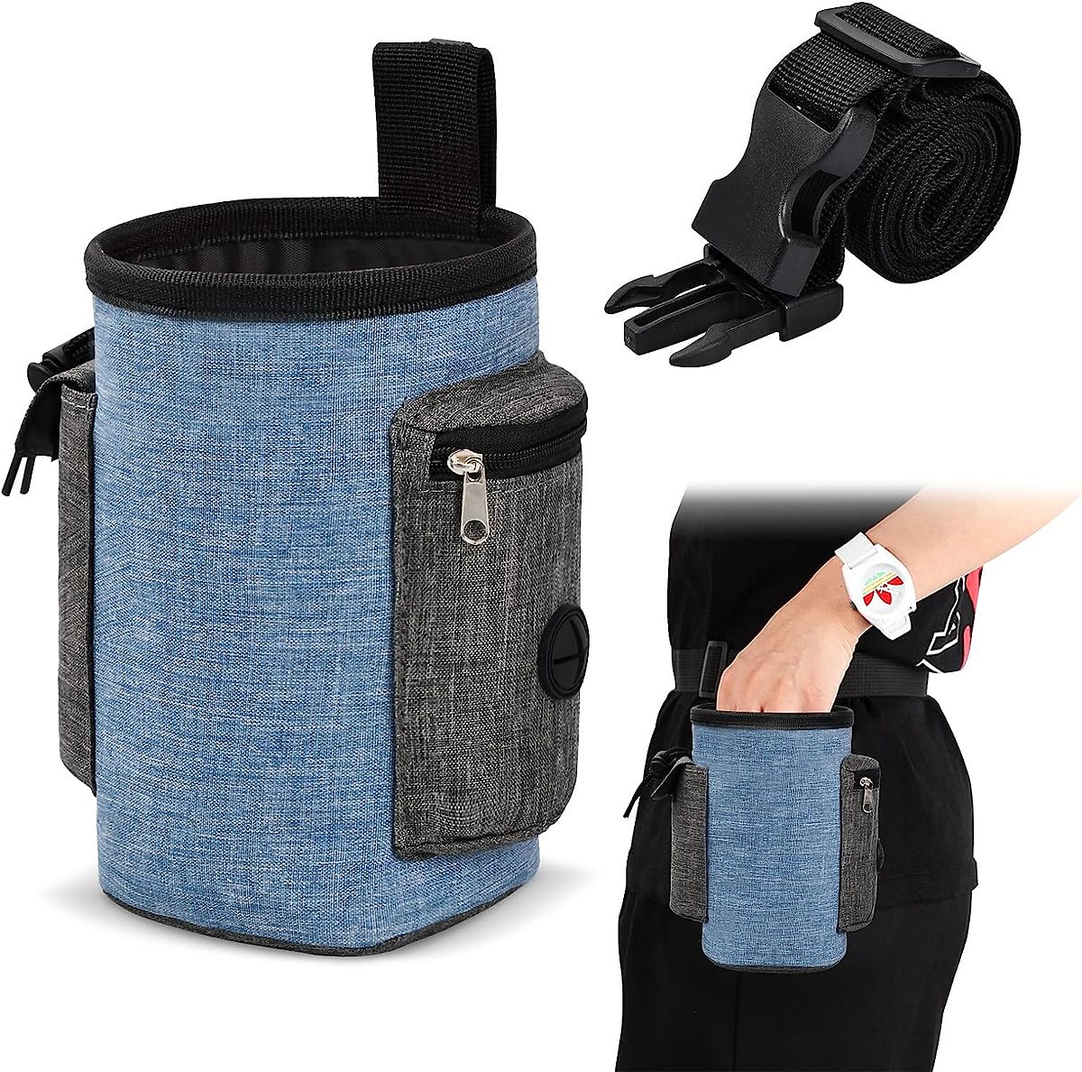 Geantă excepțională pentru recompense câine - de înaltă calitate, rezistentă la apă și durabilă. Ideală pentru călătorii cu animalul de companie, asigurând plimbări și călătorii în siguranță. Capacitate mare, compartimente suplimentare și buzunare pentru obiecte mici. Clema puternică pentru curea, curea de talie reglabilă. Acces ușor la conținut, fără riscul de a vărsa hrana. Inul rezistent la apă - geanta este astfel ușoară, durabilă, ușor de curățat.