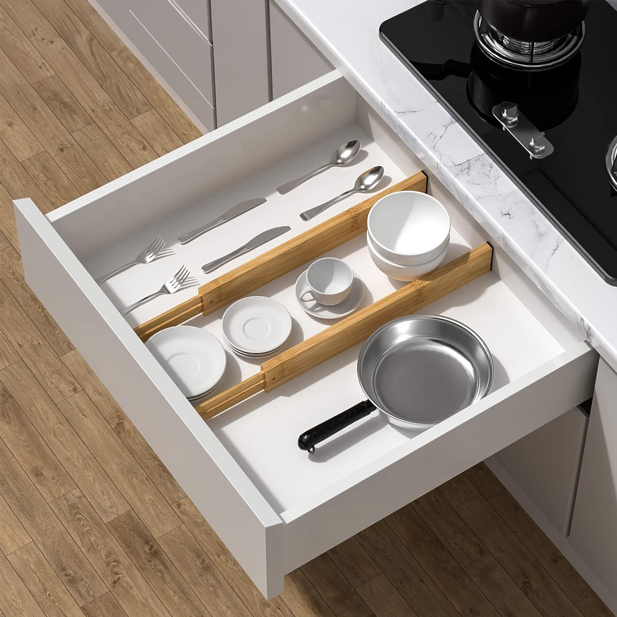 Set de 4 separatoare din bambus pentru sertar RITA