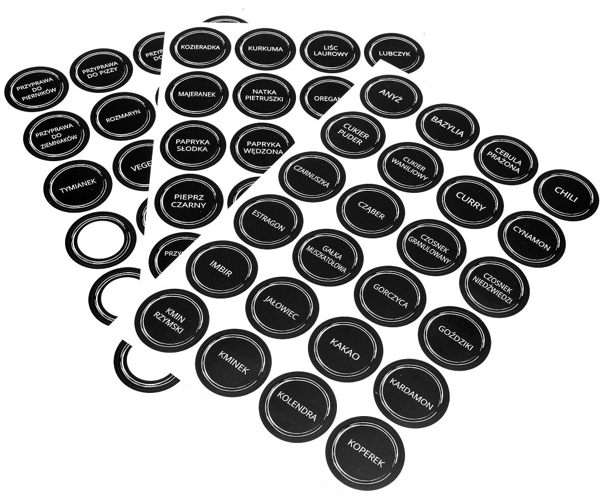 Număr de borcane: 24 | 72 de etichete cu denumiri de condimente