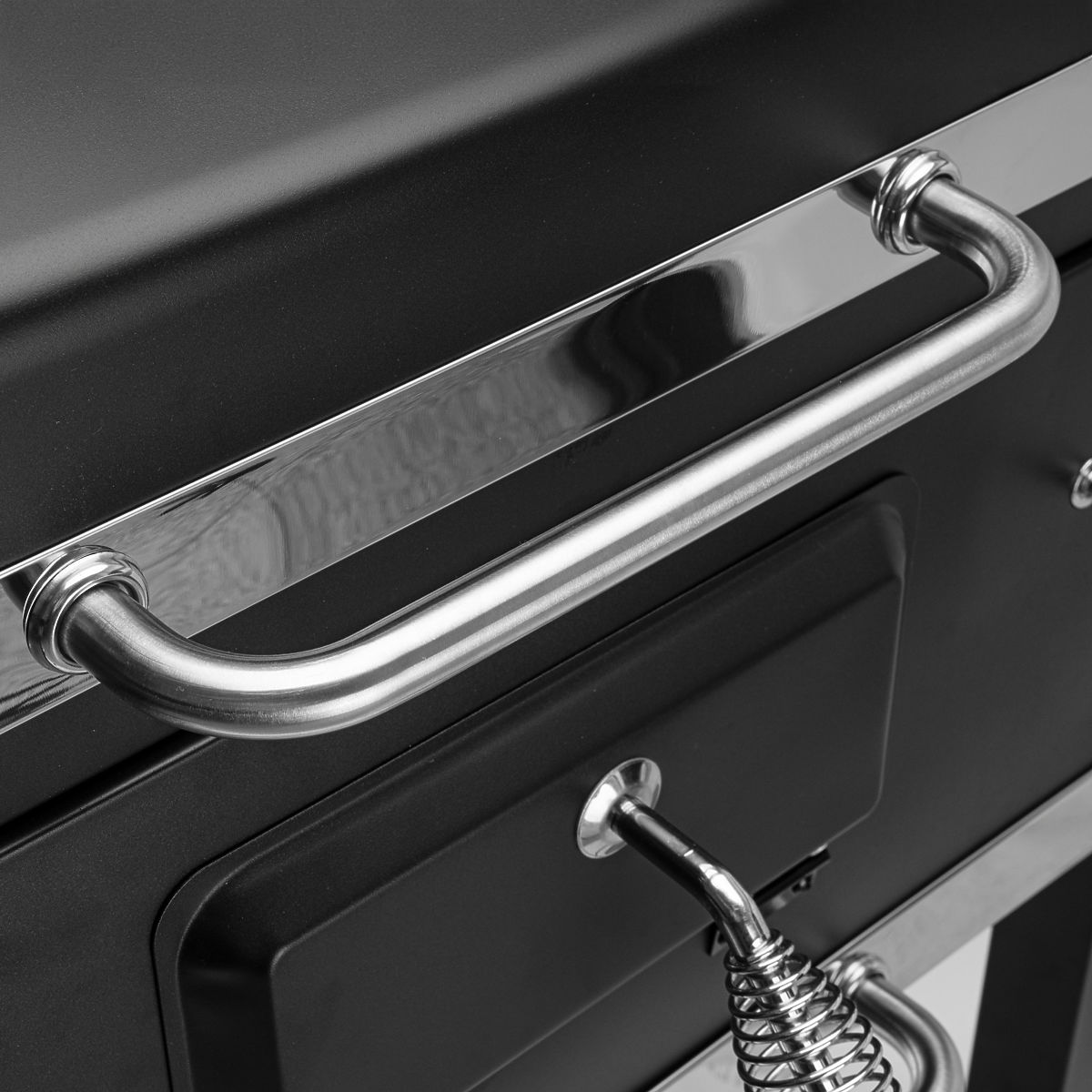 Termometru în capac: Termometru precis până la 430°C care permite controlul temperaturii în interiorul grătarului.