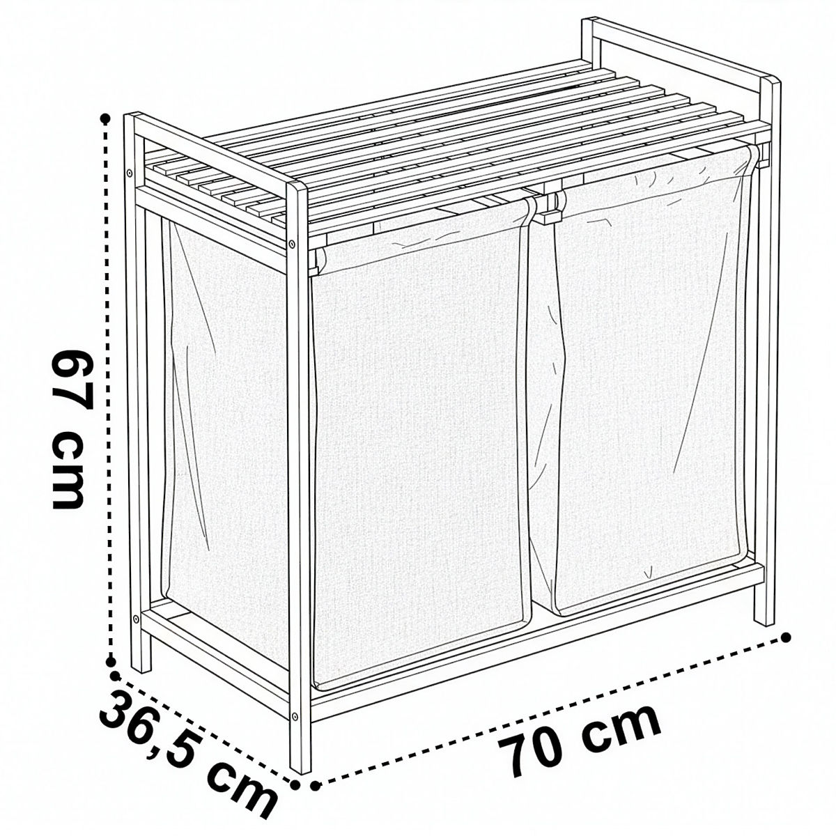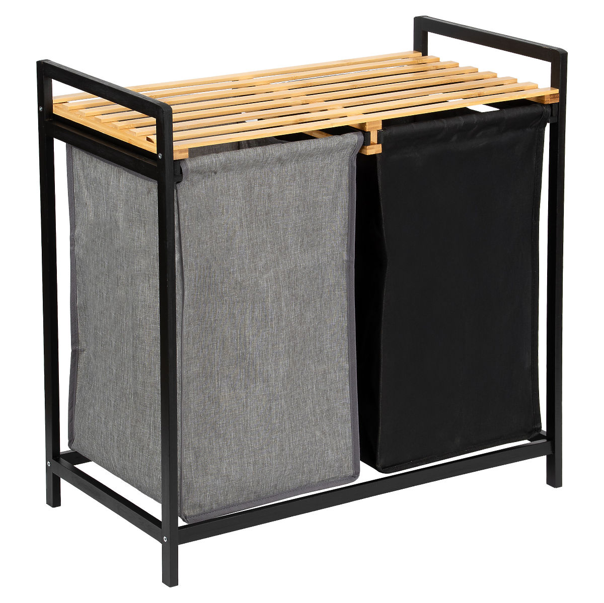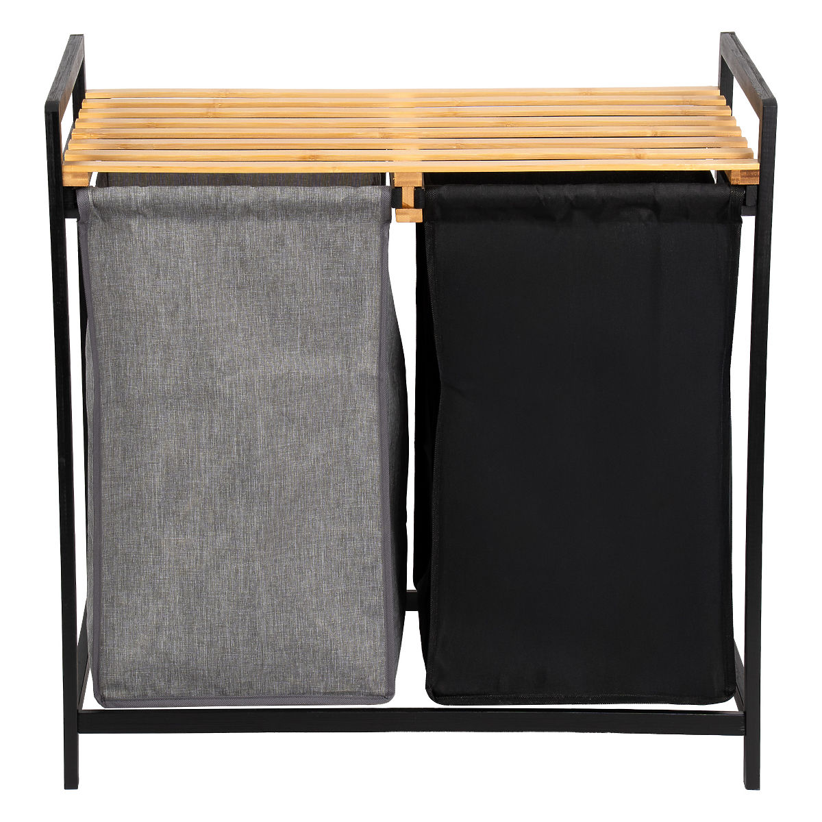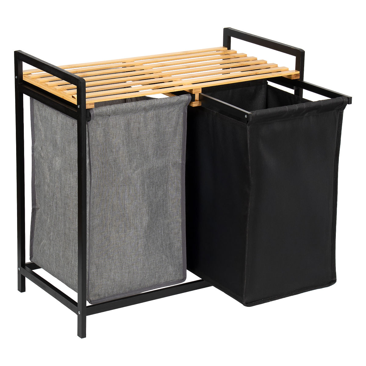 Coșul de rufe din bambus Hanoi Black Duo Color este o soluție elegantă și funcțională pentru o baie modernă. Capacitatea de 80 de litri și împărțirea în două compartimente facilitează sortarea rufelor. Polița superioară practică este potrivită pentru detergenți, accesorii sau decorațiuni. Coșurile din material textil pot fi ușor glisate și montajul simplu, fără găurire, permite pregătirea rapidă a coșului pentru utilizare. Ideal pentru interioare de tip loft și moderne.