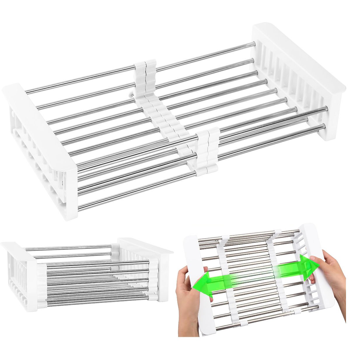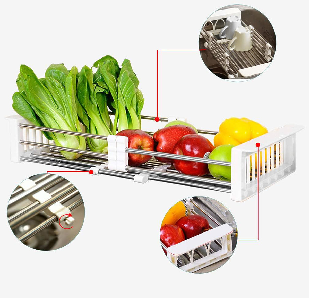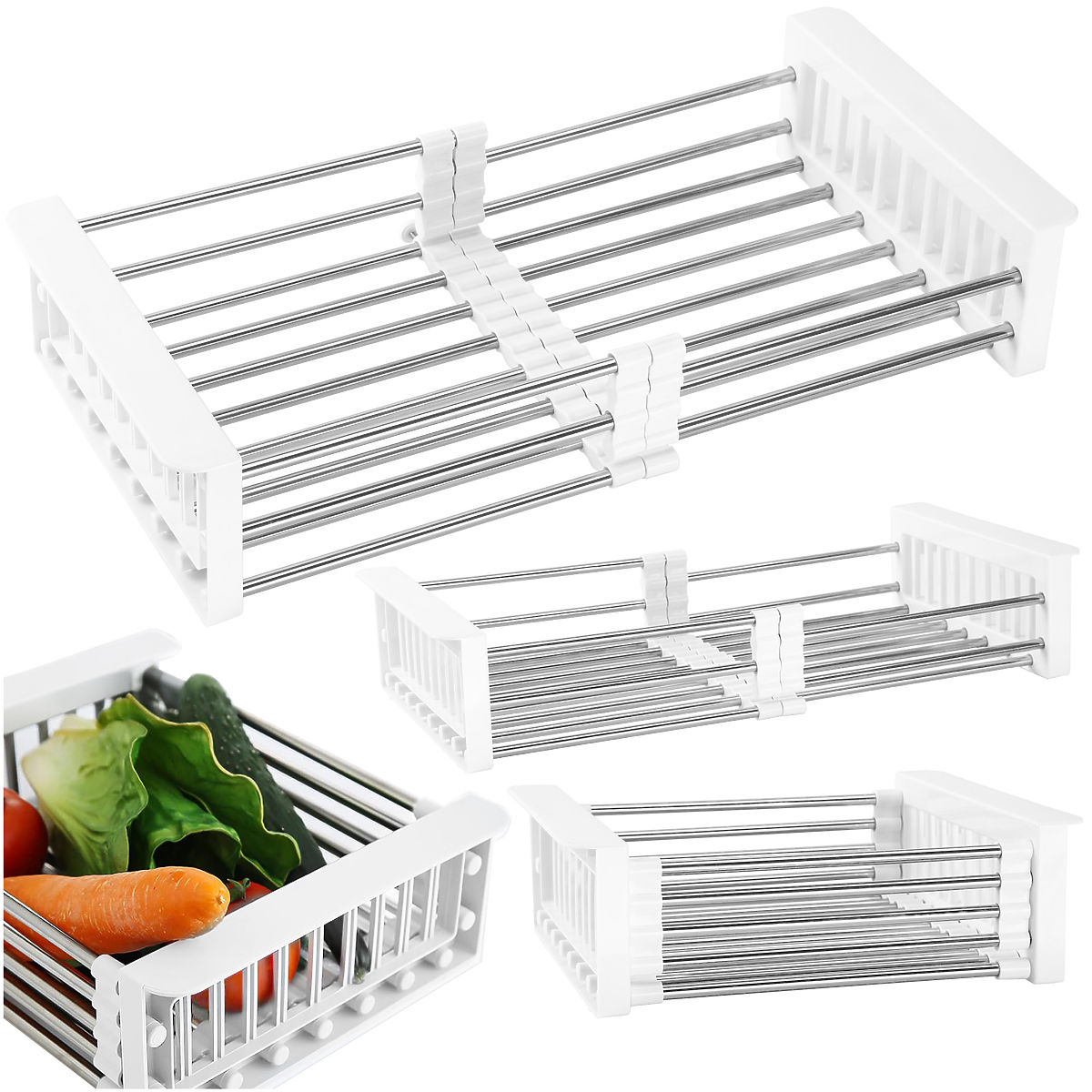 Căutați un scurgător practic și universal? Sunteți în locul potrivit! În fața dumneavoastră se află scurgătorul Ordos. Este fabricat din plastic rezistent și oțel inoxidabil, ceea ce îl face rezistent la coroziune și foarte durabil. Este ideal pentru uscarea vaselor, legumelor și fructelor după spălare. Construcția telescopică permite ajustarea la dimensiunea dorită a chiuvetei. Coșul este reglabil între 28 cm și 43 cm.