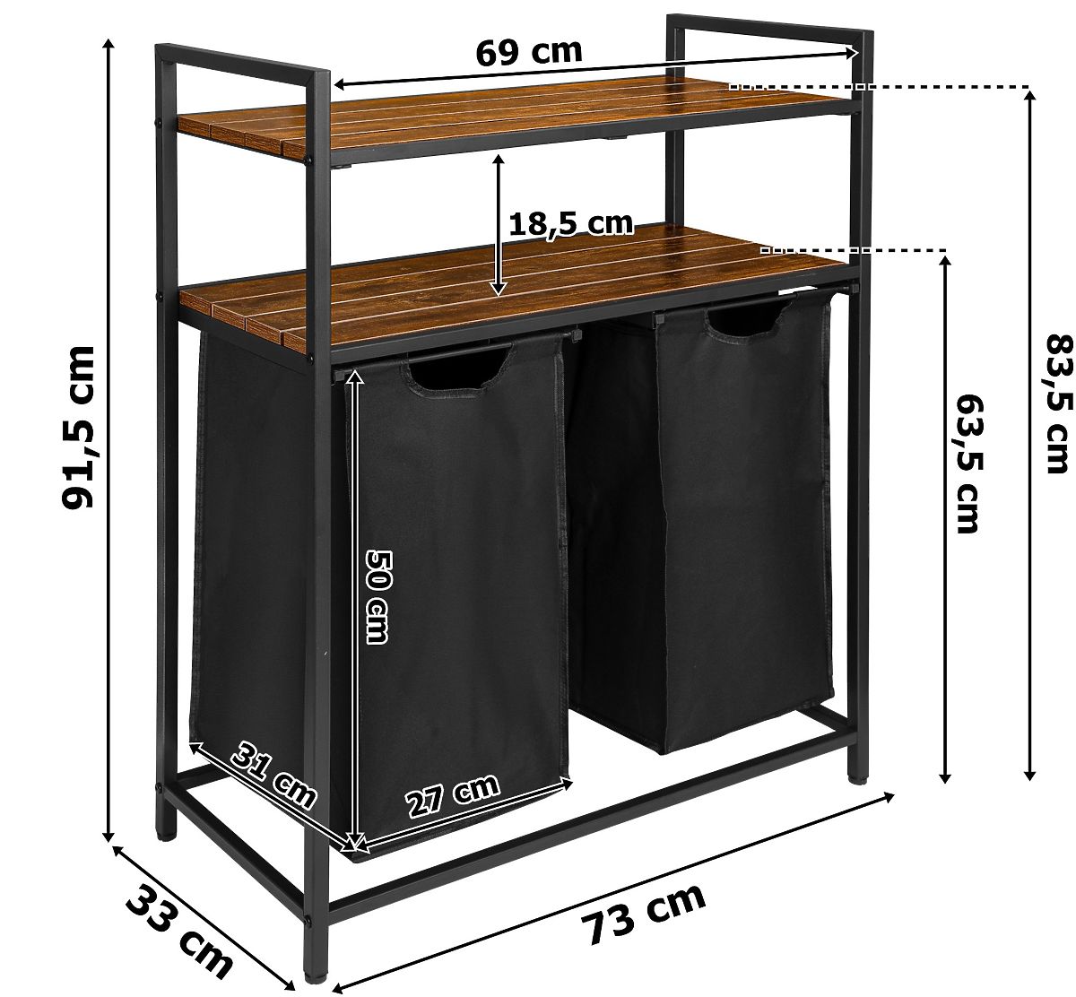 Coș de rufe cu rafturi 2 compartimente MIRUN
