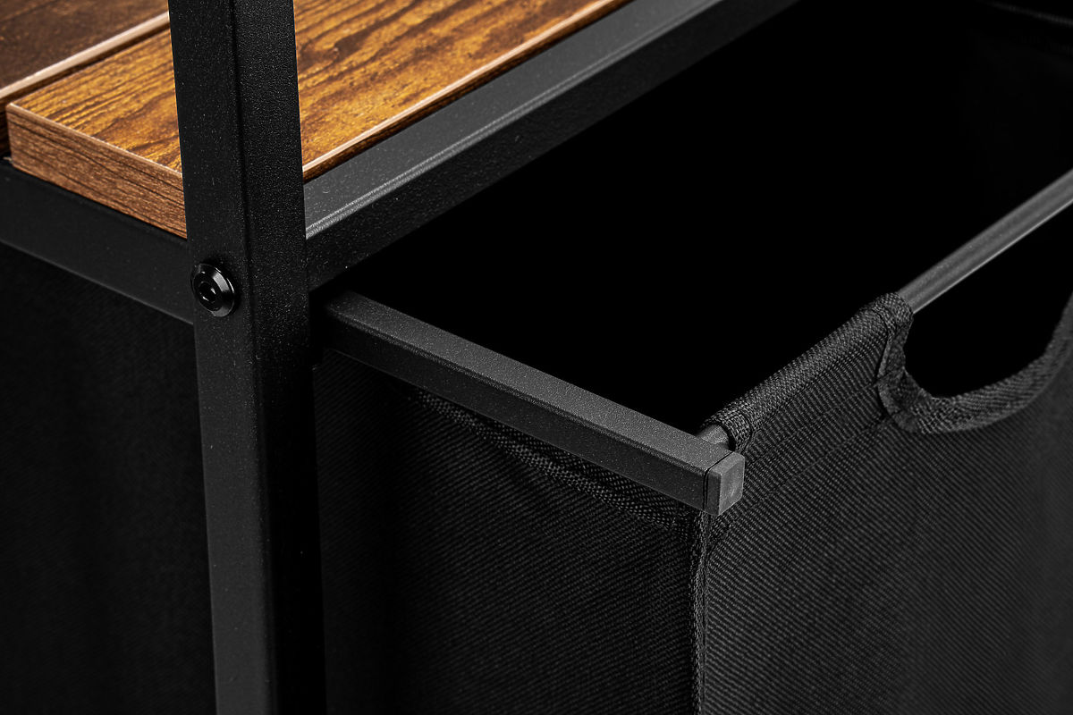 Coșul de rufe cu două compartimente și rafturi Mirun este soluția ideală pentru cei care apreciază funcționalitatea și aspectul stilat. Datorită celor două coșuri spațioase, puteți sorta cu ușurință rufele, iar rafturile suplimentare oferă spațiu pentru prosoape și alte accesorii de baie. Construcția solidă și designul loft asigură că coșul Mirun se potrivește perfect în orice interior, conferindu-i un caracter industrial. Folosind acest coș, economisiți spațiu și obțineți un loc ordonat în baie.