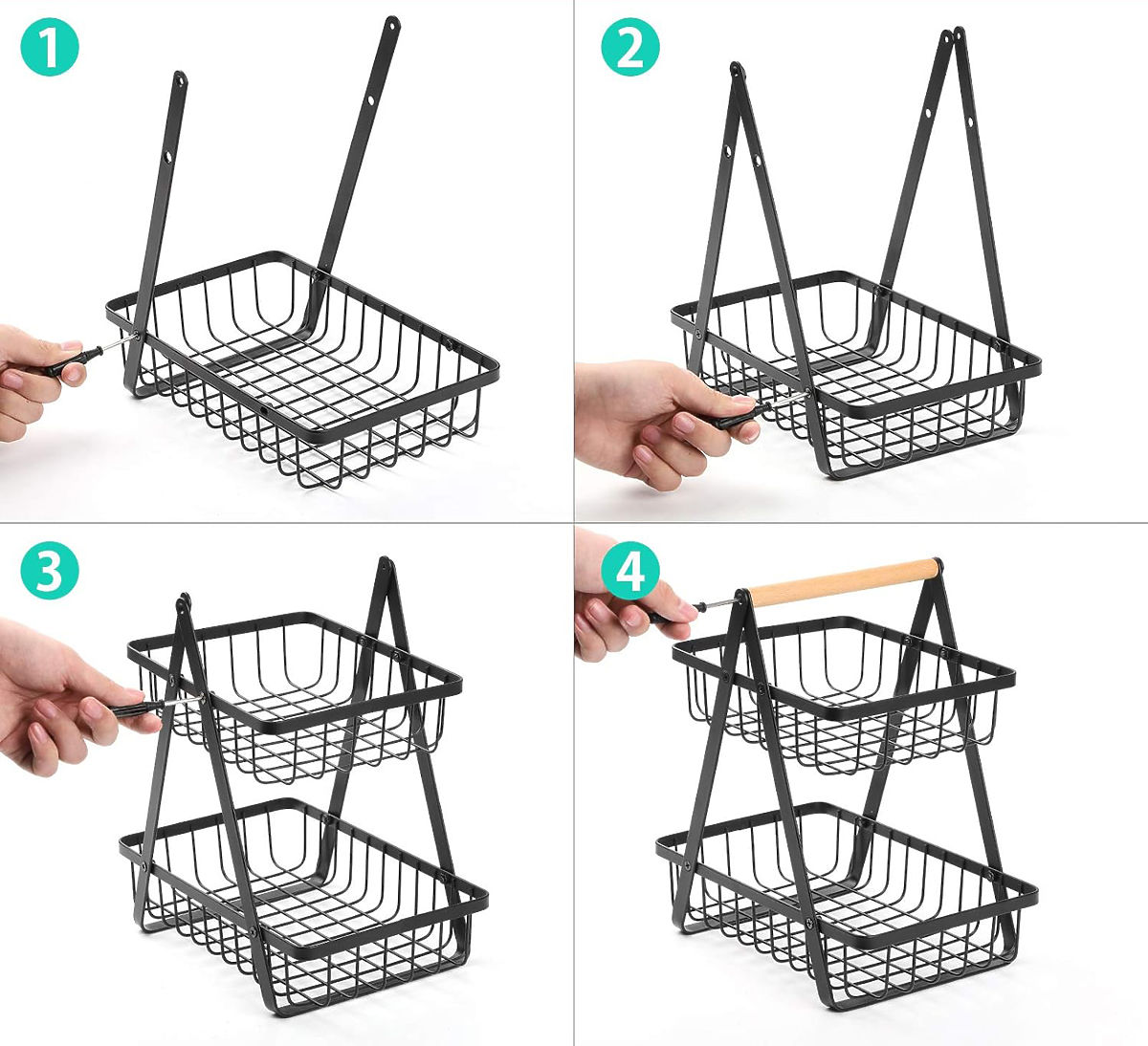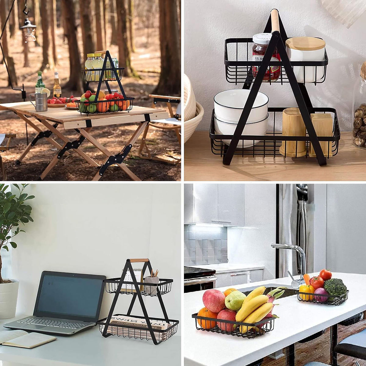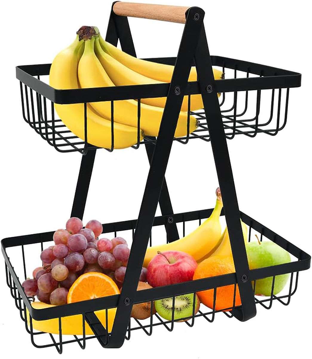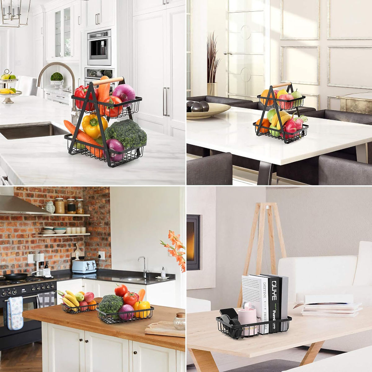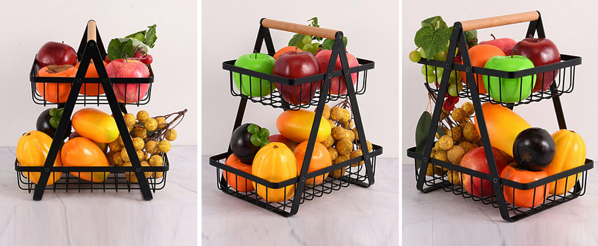 ✅ Practicitate pe primul loc - Coșul cu două niveluri oferă suficient spațiu pentru depozitarea diverselor fructe, iar construcția sa stabilă garantează că fructele rămân în stare perfectă.