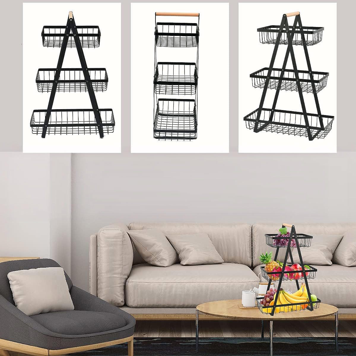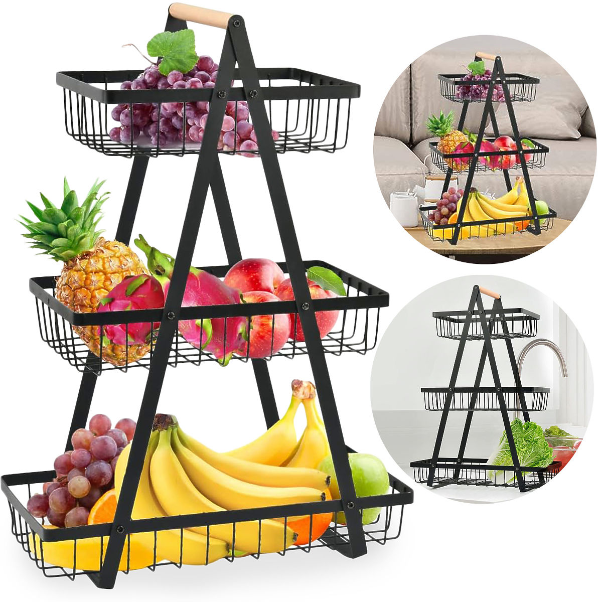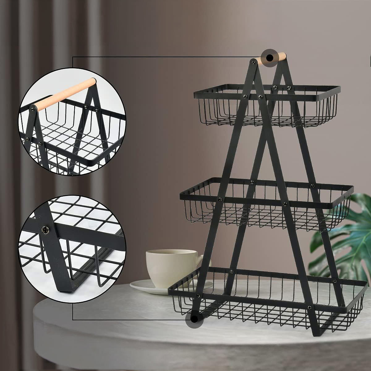 Coș pentru fructe PULOS 3 niveluri negru