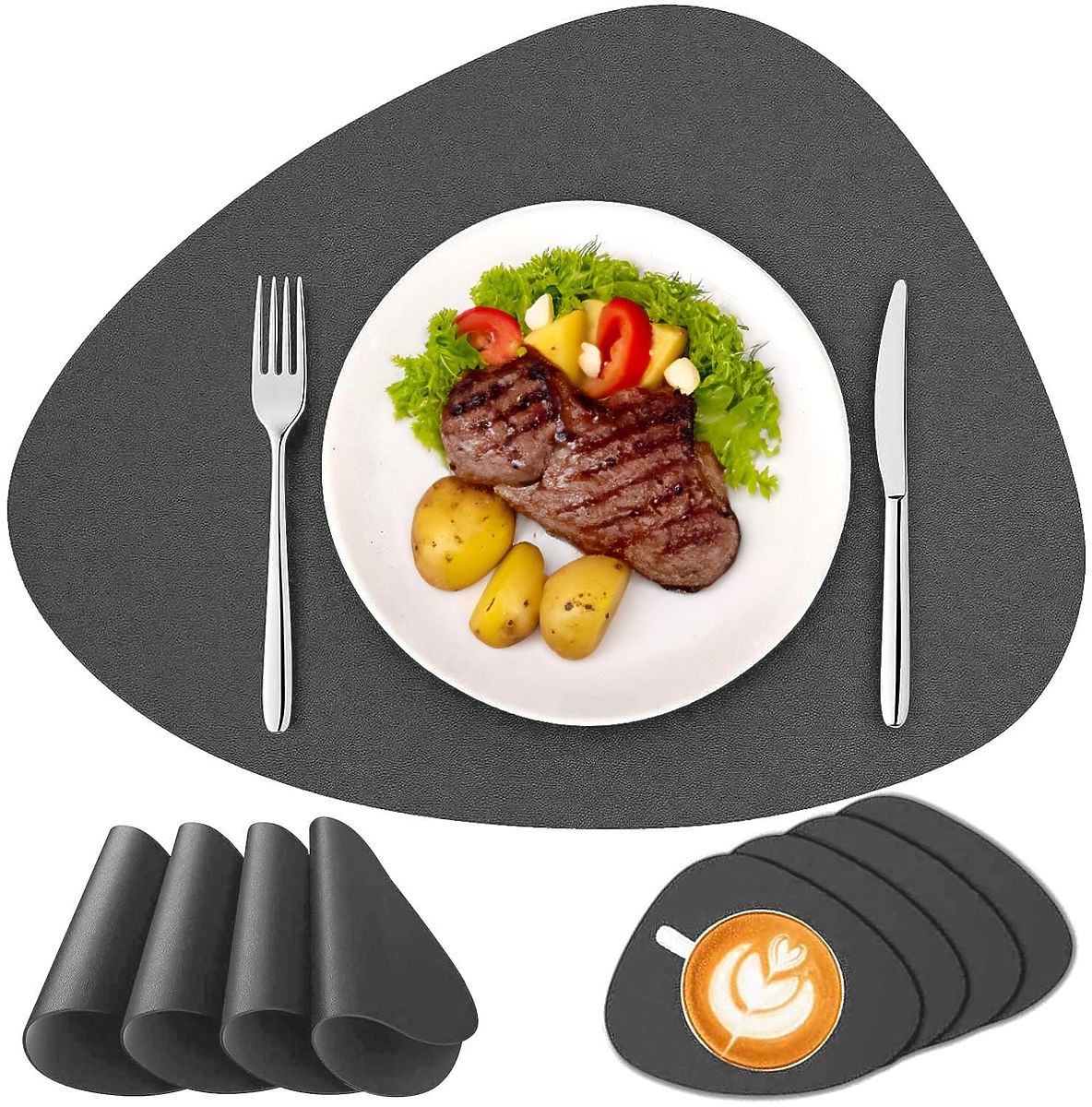 Setul de suporturi Trival este un set de înaltă calitate pentru masă, de culoare gri elegantă, fabricat din material PVC durabil. Acest set este soluția ideală care nu doar protejează masa de pete și deteriorări, dar adaugă și eleganță interiorului dumneavoastră. Setul include 4 suporturi mari, perfecte pentru farfurii, oferind o bază stabilă și estetică pentru mâncărurile dumneavoastră. În plus, setul conține și 4 suporturi mai mici, ideale pentru cești și căni, care protejează suprafața mesei de posibilele deteriorări cauzate de băuturile fierbinți. Setul de suporturi Trival nu doar că îngrijește masa, dar îi îmbogățește și aspectul.