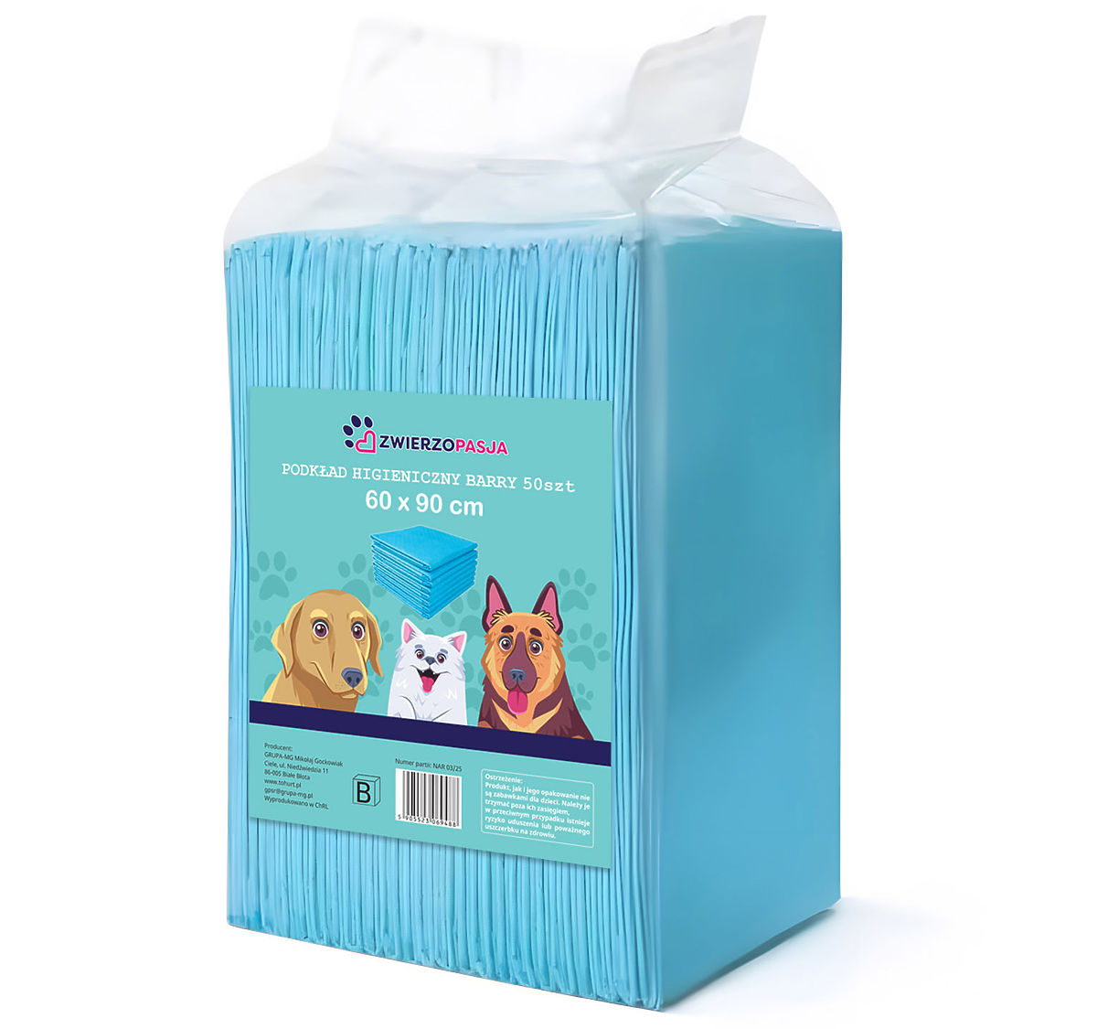 Pernuțe igienice pentru animale BARRY 60x90 50 buc