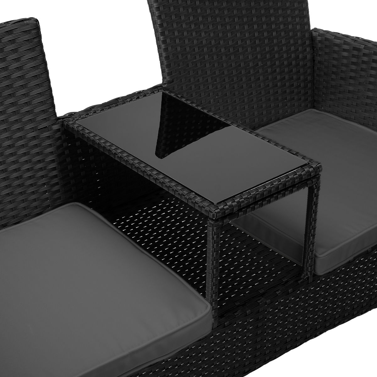 Bancă de grădină din tehnoratan canapea CORDOBA neagră cu perne gri