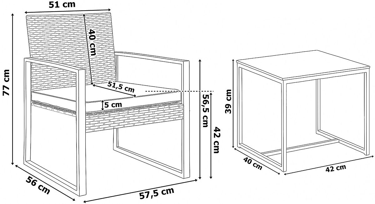 Conținutul setului: 2 scaune + 1 masă