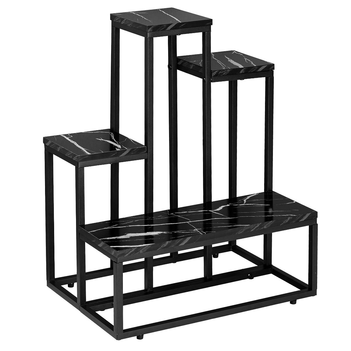 ✔️ Eleganța marmurei – rafturile laminate în culoarea marmurei negre conferă suportului pentru flori un caracter luxos. Suprafața laminată nu doar că arată elegant, dar evidențiază frumos plantele și decorațiunile.