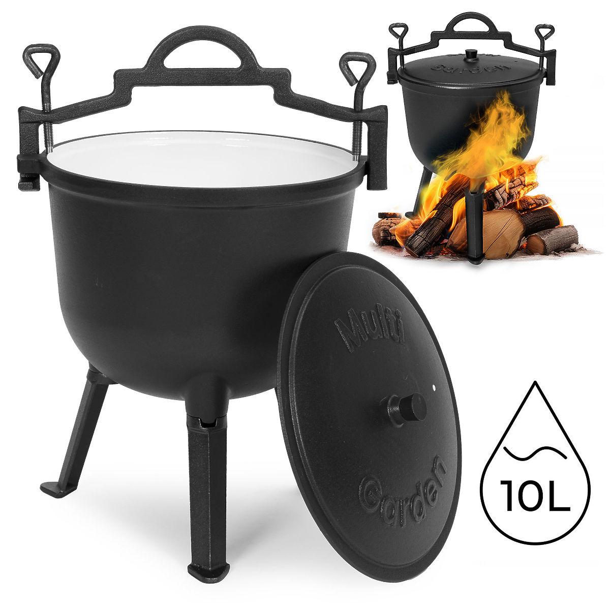 Ceaun din fontă emailată 10L MultiGarden pentru foc de tabără