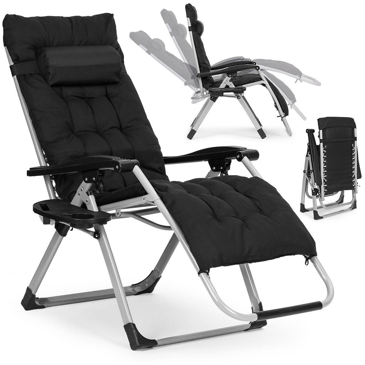 Lukahome.ro » Mobilier de grădină / Șezlonguri de grădină / Șezlong de grădină cu spătar reglabil și pernă + suport pentru cap negru MultiGarden