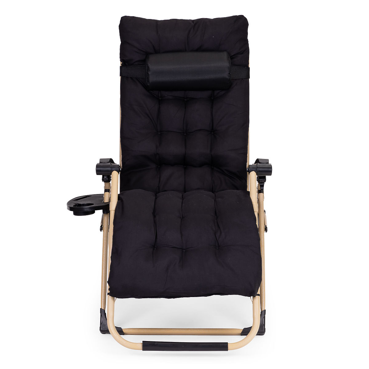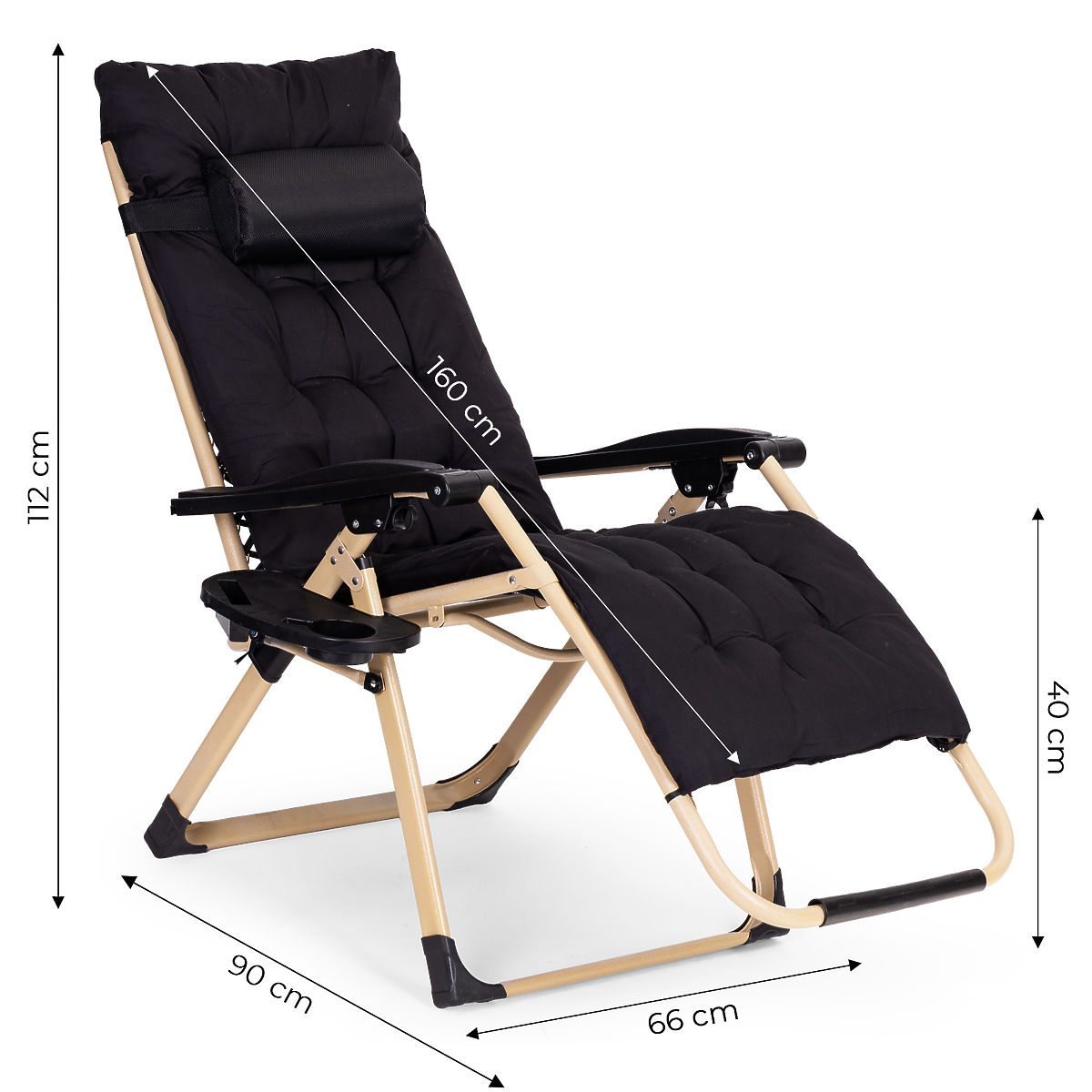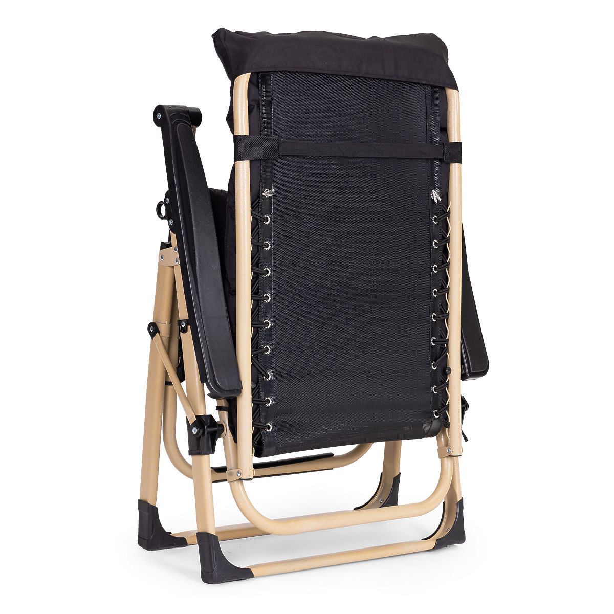 Șezlong de grădină pliabil cu pernă și spătar reglabil, cadru negru și auriu. .. mai mult