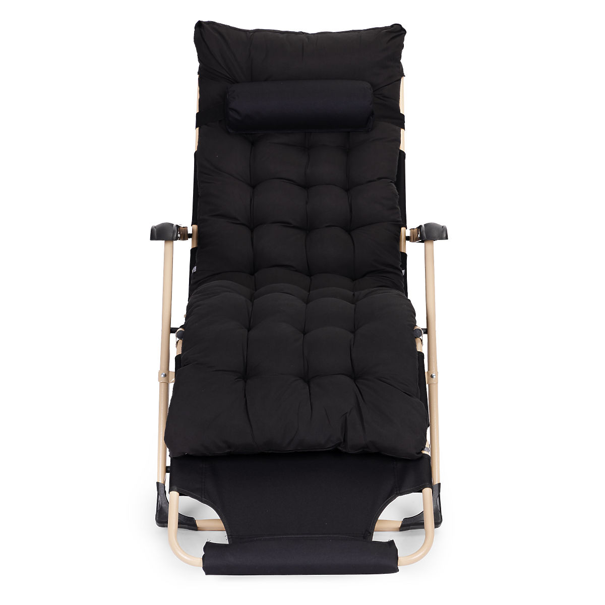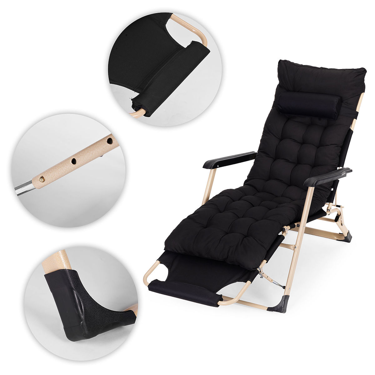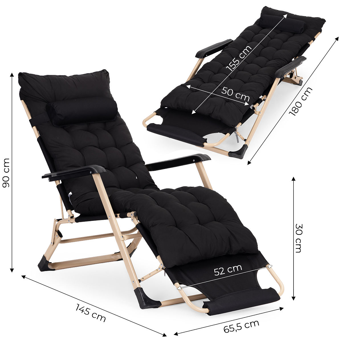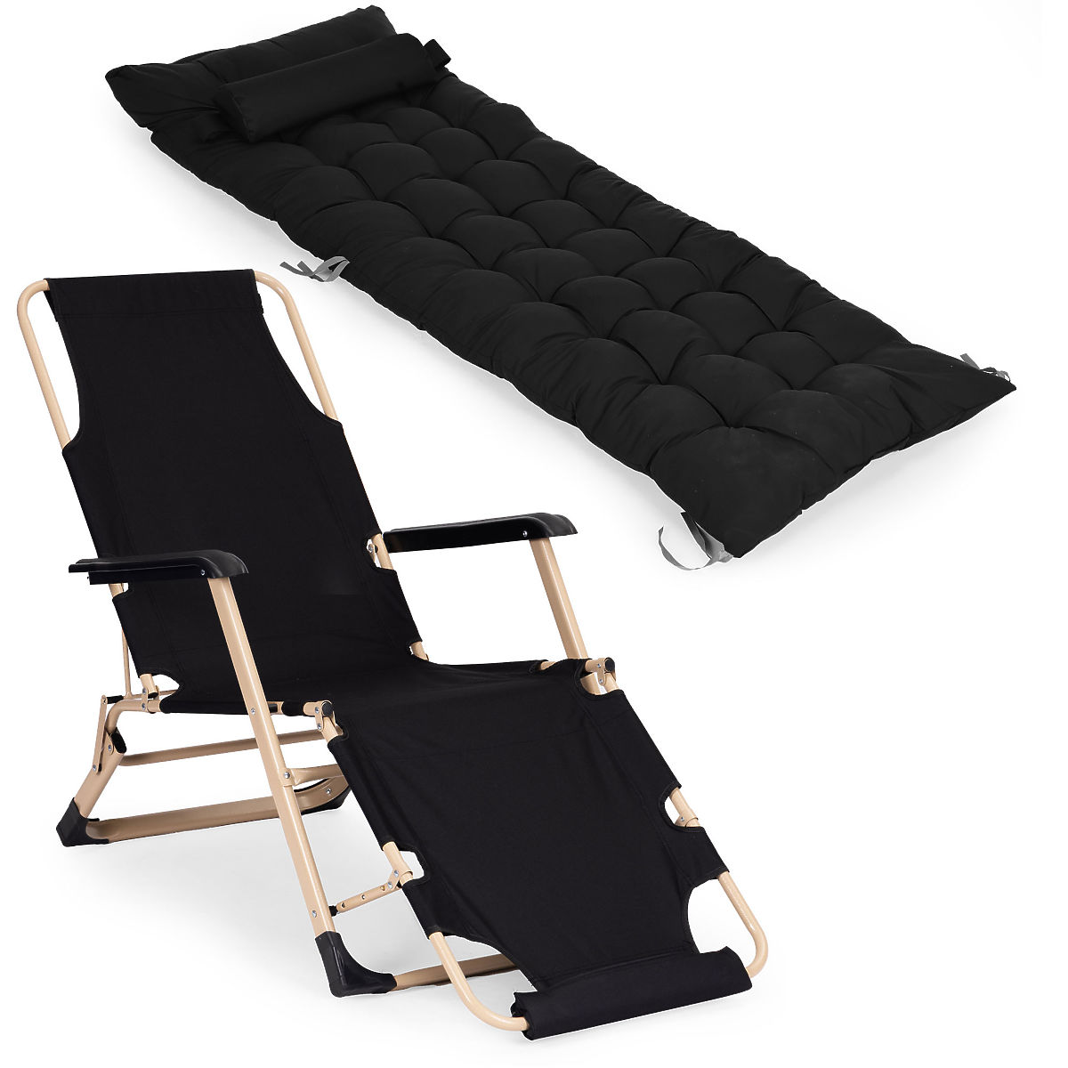 Lukahome.ro » Mobilier de grădină / Șezlonguri de grădină / Șezlong de grădină 2 în 1 cu pernă, suport pentru picioare reglabil, negru, cadru auriu MultiGarden