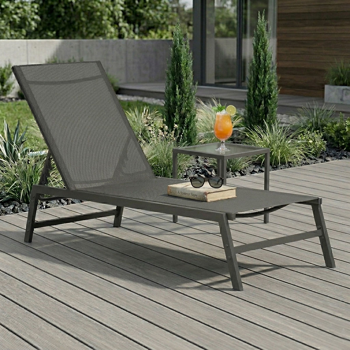 Șezlong de grădină reglabil, structură din oțel, plasă textilă respirabilă. .. mai mult