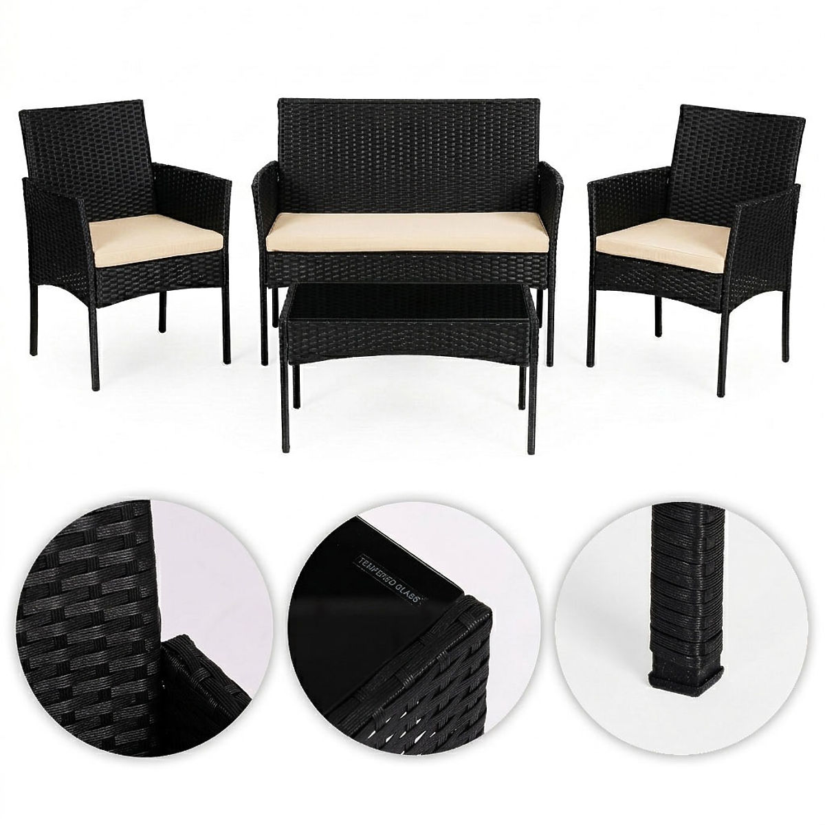 Set de mobilier de grădină pentru 4 persoane din tehnoratan rezistent. .. mai mult