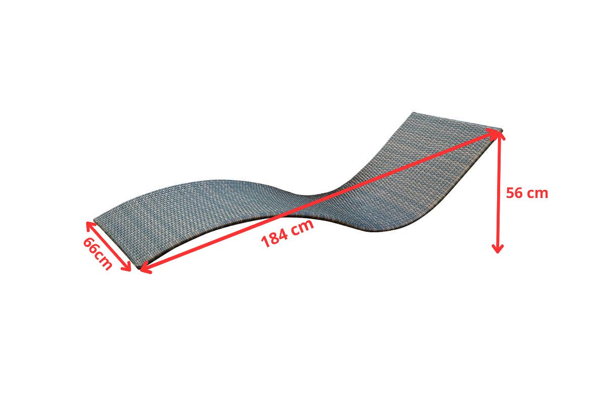Dimensiuni 1 șezlong: lungime: 184 cm, lățime: 66 cm, înălțime: 56 cm. Șezlongul este livrat pe 1 palet cu dimensiunile 80x60x200 cm, greutate 30 kg.