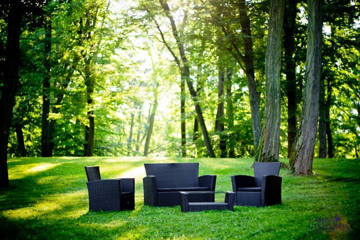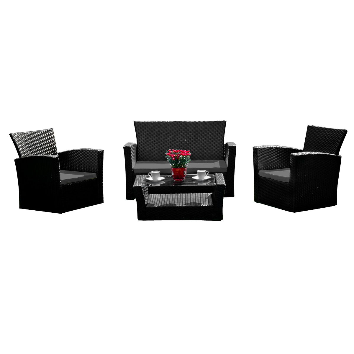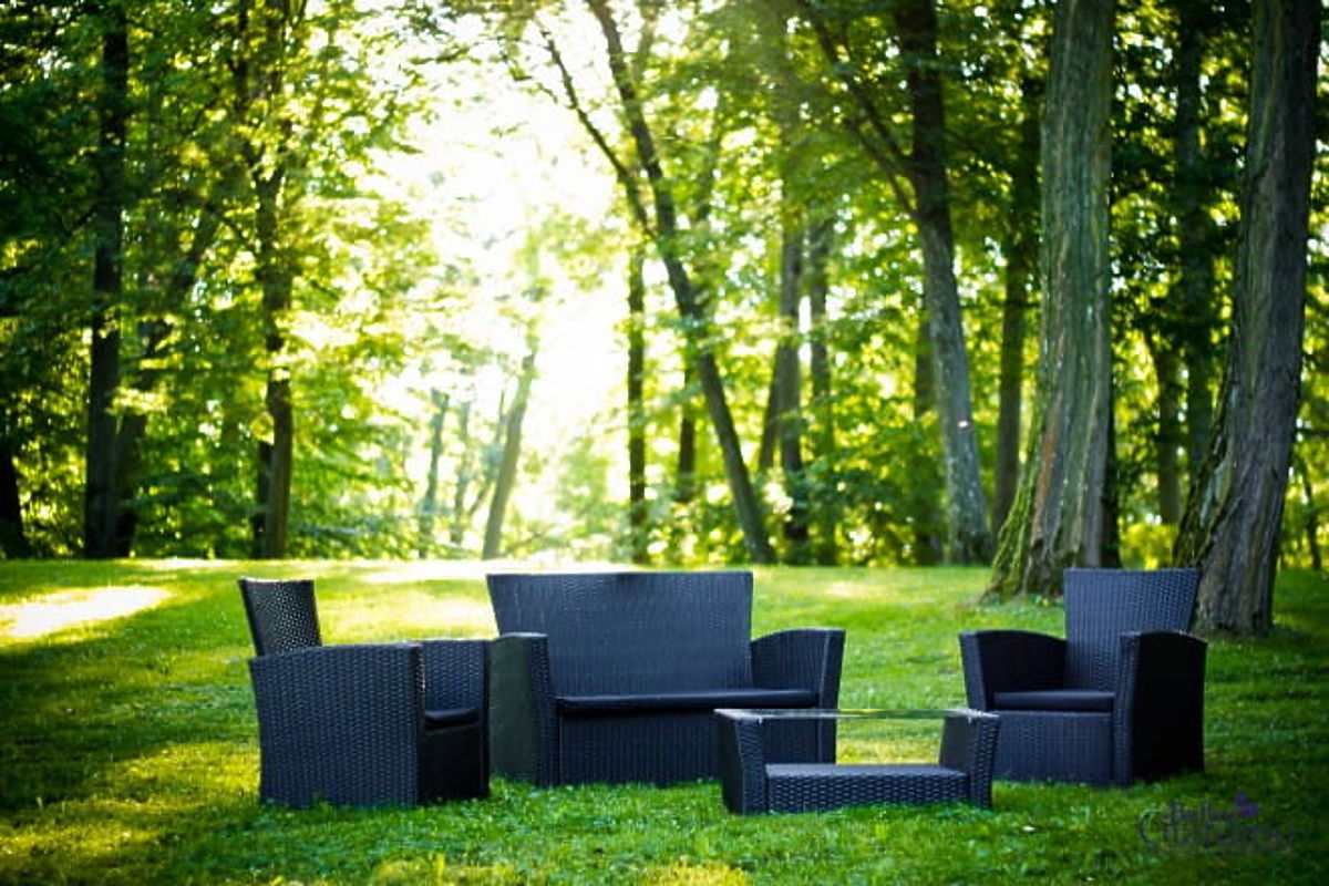 Lukahome.ro » Mobilier de grădină / Seturi de grădină / Mobilier de grădină din tehnoratan (canapea 123cm, 2 fotolii + masă) UNICO negru