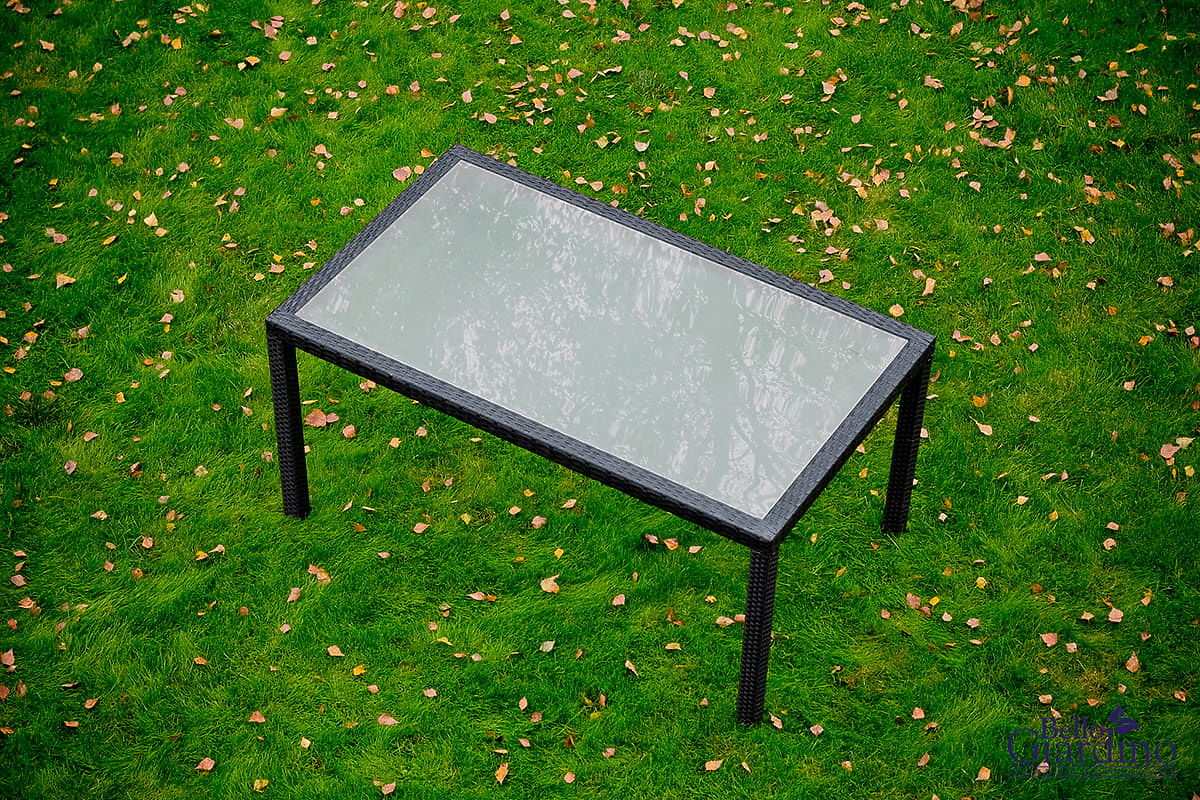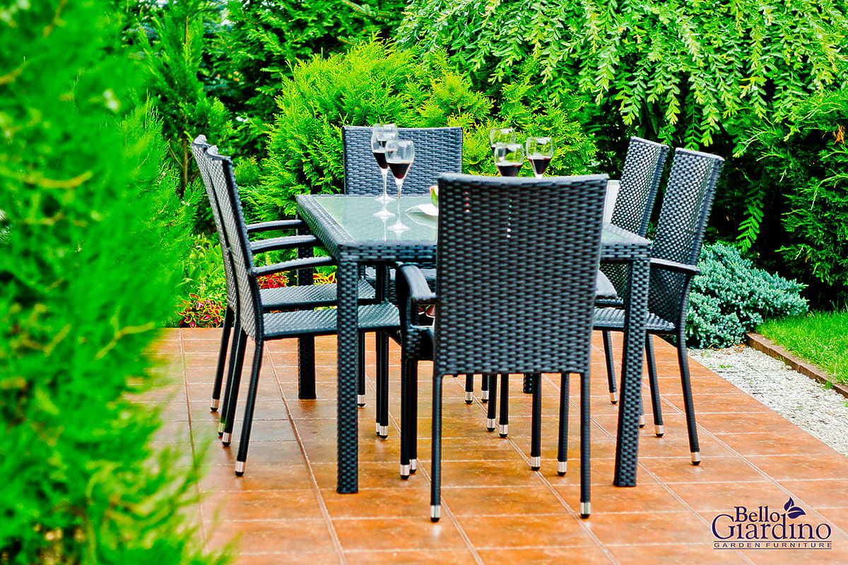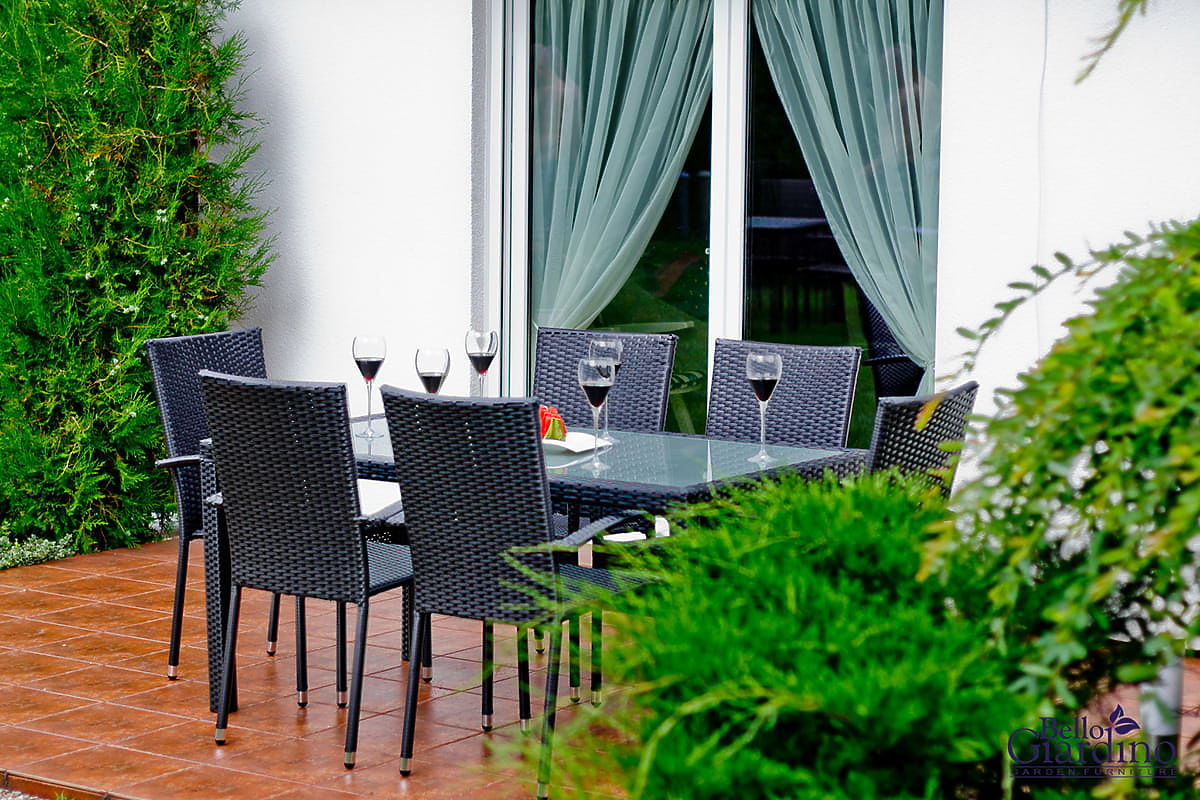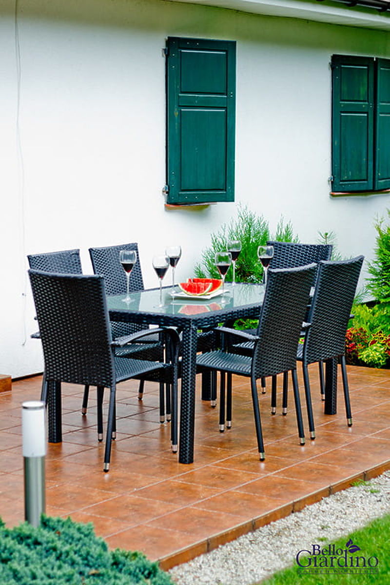 Lukahome.ro » Mobilier de grădină / Seturi de grădină / Set de mobilier de sufragerie din tehnoratan (masă 150×90 cm + 6 × scaune) AVVICENTE, negru