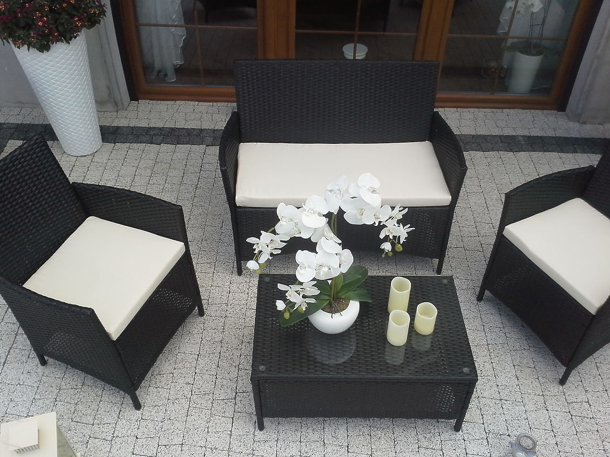 Set de balcon din tehnoratan (Canapea + 2 x fotoliu + măsuță) COMODO negru