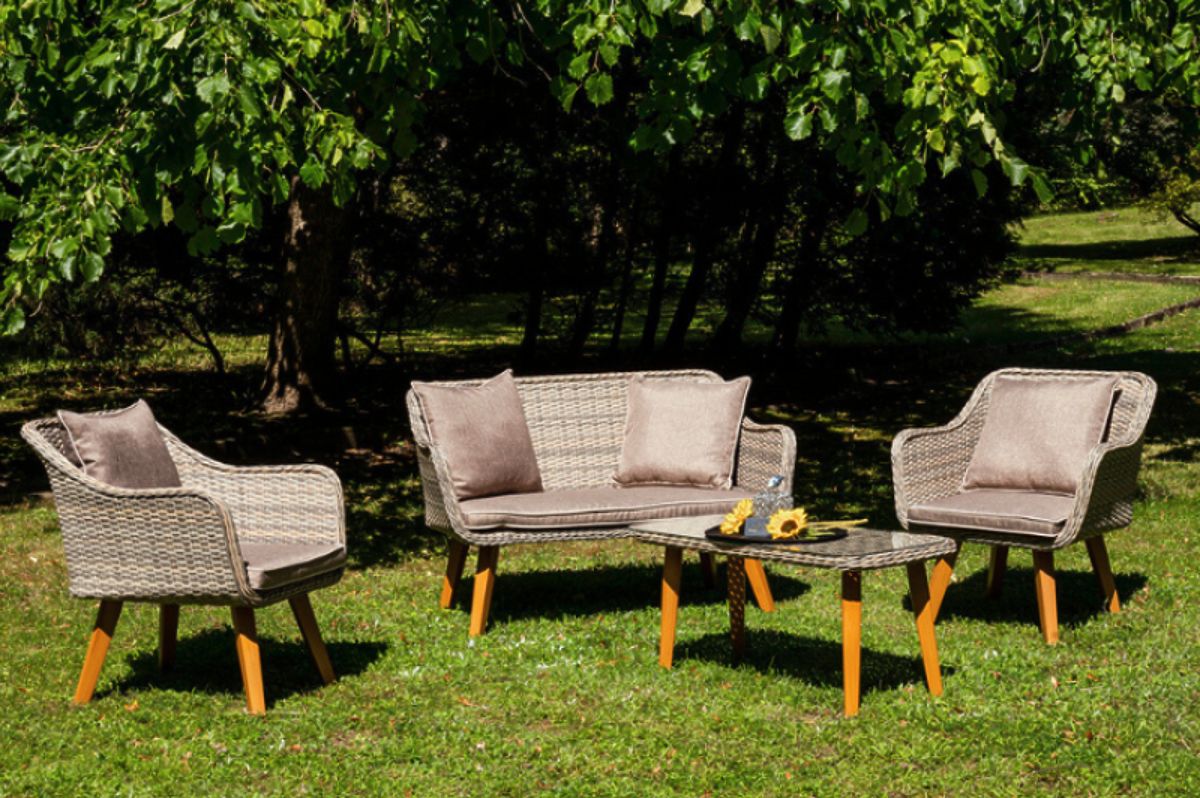 Set elegant de grădină din tehnoratan (2 x fotolii confortabile, canapea + măsuță) LARGO gri neunifo
